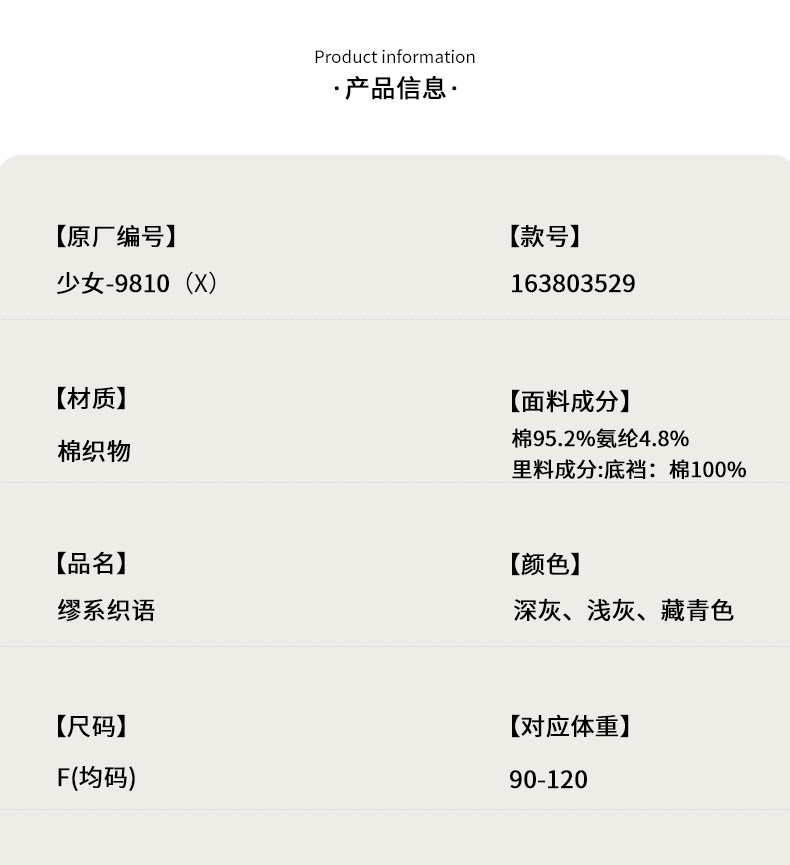 内裤女简约灰色系舒适健康纪念日百货门店同款163803529