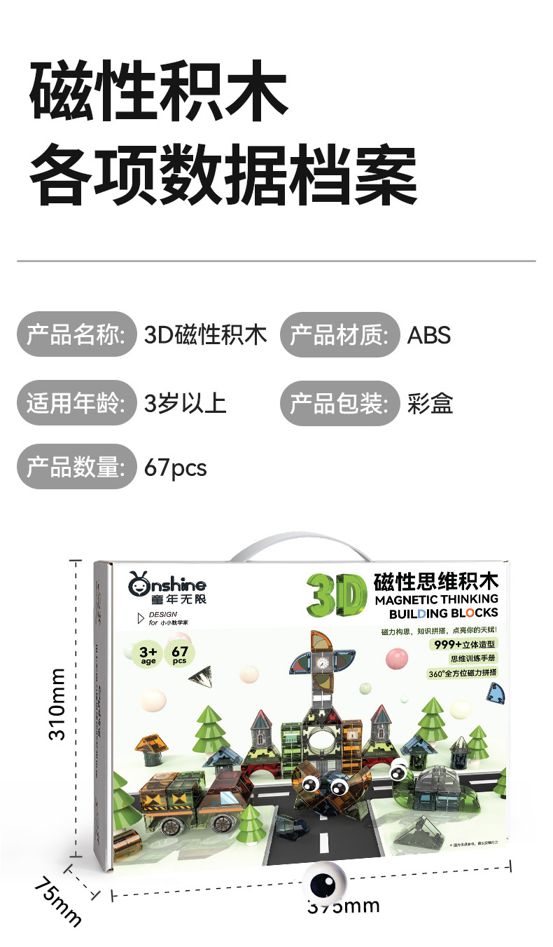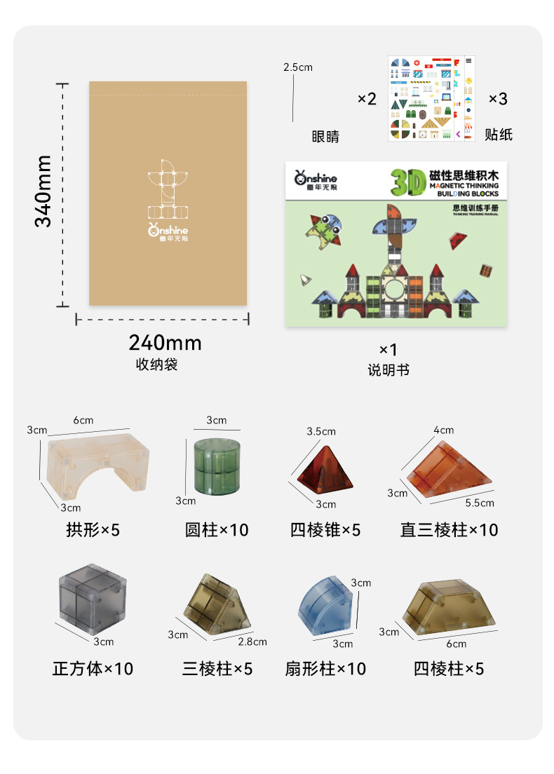 【开启创意之门 锻炼认知能力】onshine3D几何磁力块积木儿童磁吸立体大颗粒方块拼装男女孩益智玩具礼物