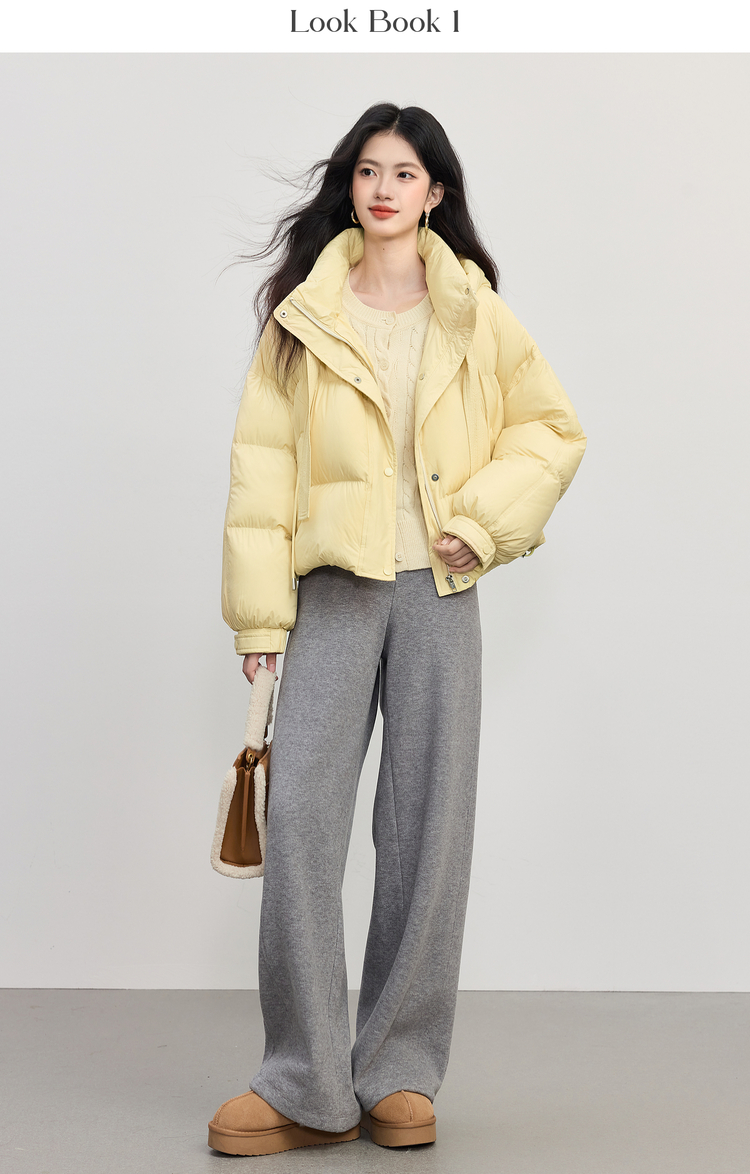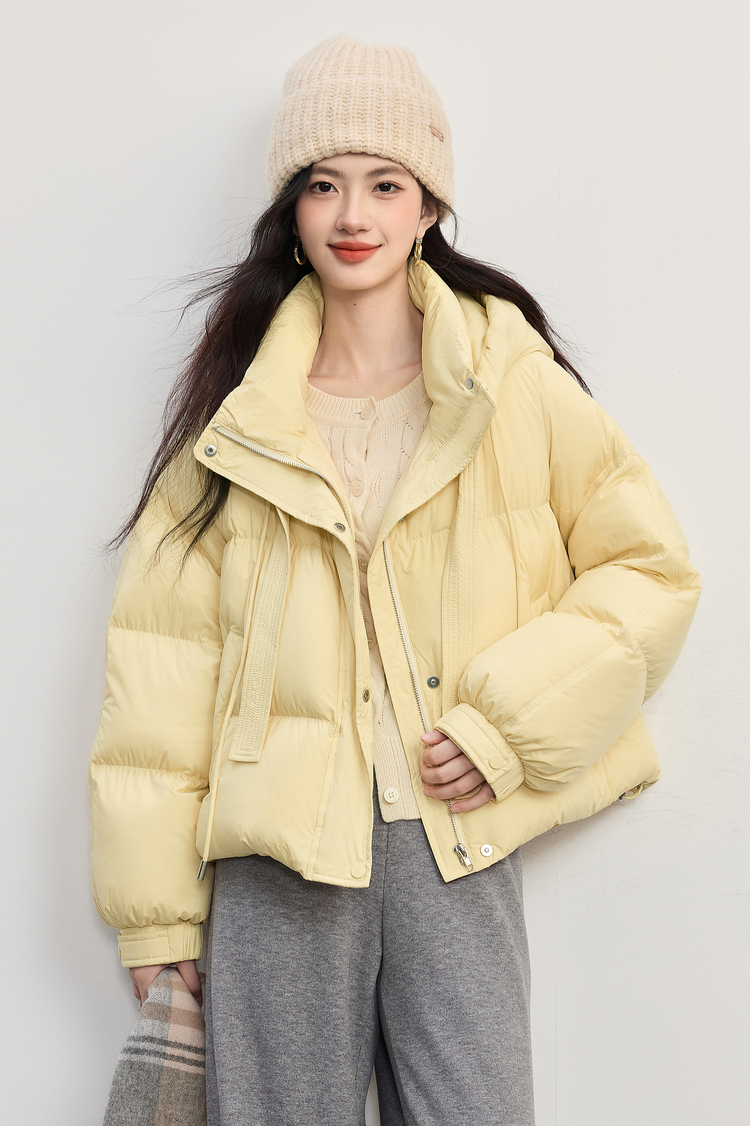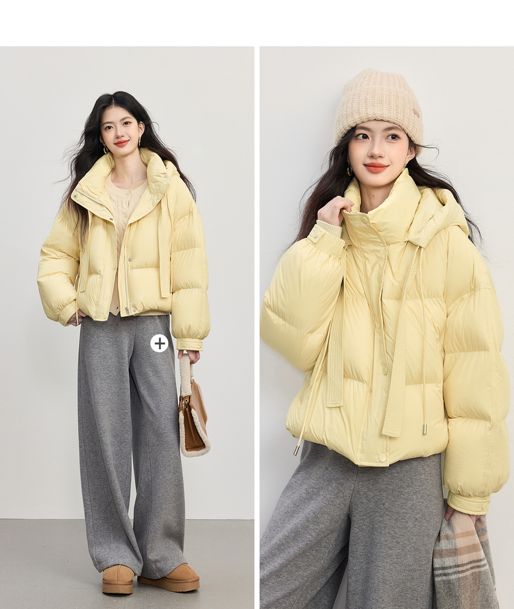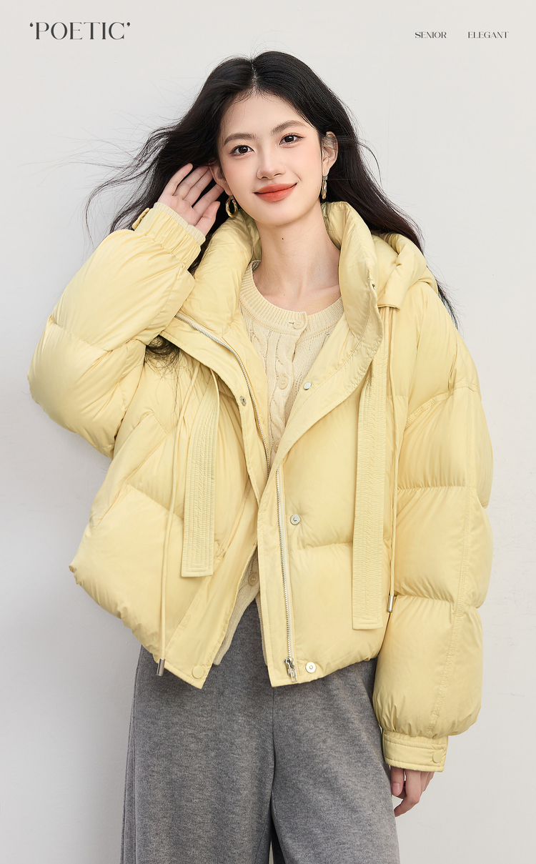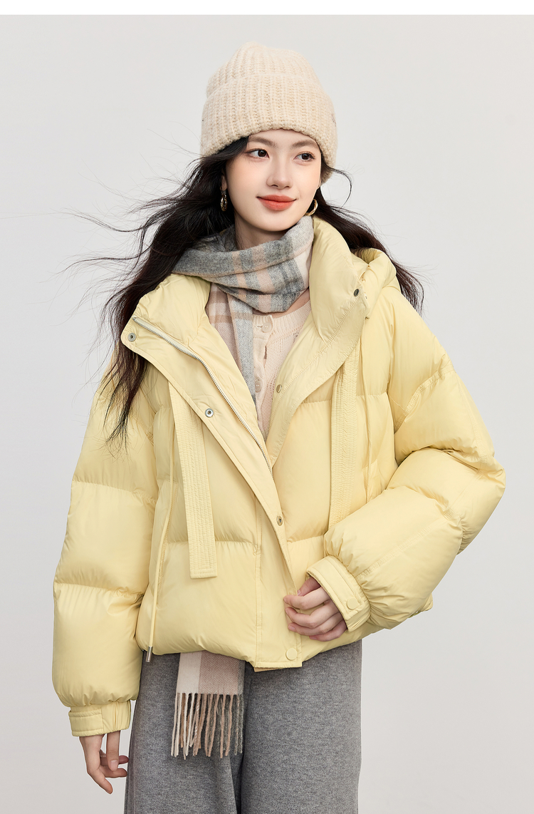 【10/23新品】熙世界高暖0压感白鸭绒羽绒服短款冬季连帽蓬松面包服