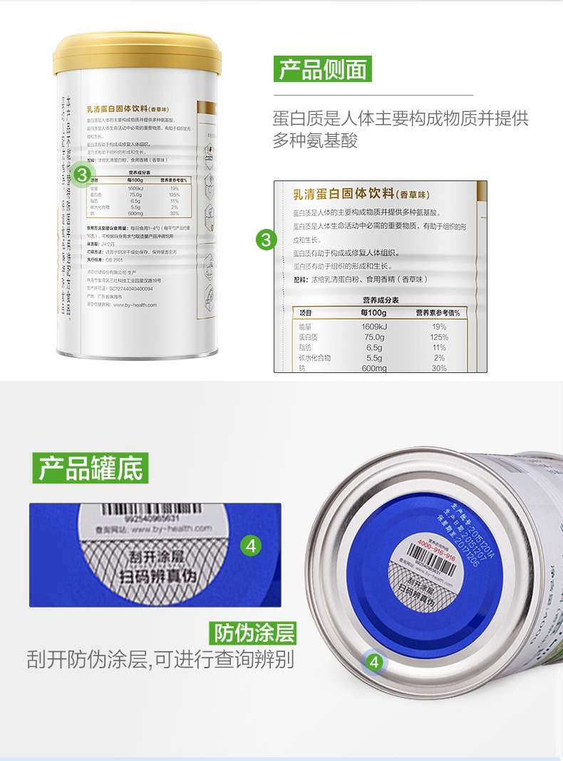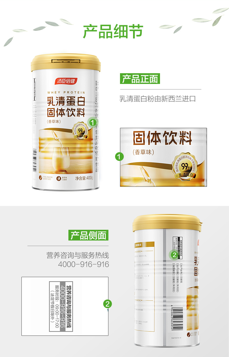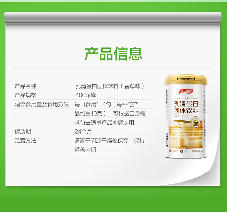 汤臣倍健乳清蛋白粉 健身增健肌粉香草味重400g