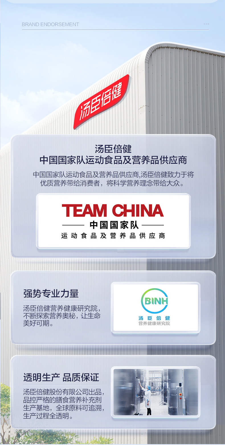 - 作为全球膳食营养补充剂行业领先者,汤臣倍健实施科学营养战略,建立了全面的膳食营养补充剂科学体系,携手全球前沿科研力量,以极致的科学精神,打造极致的科学营养产品力。