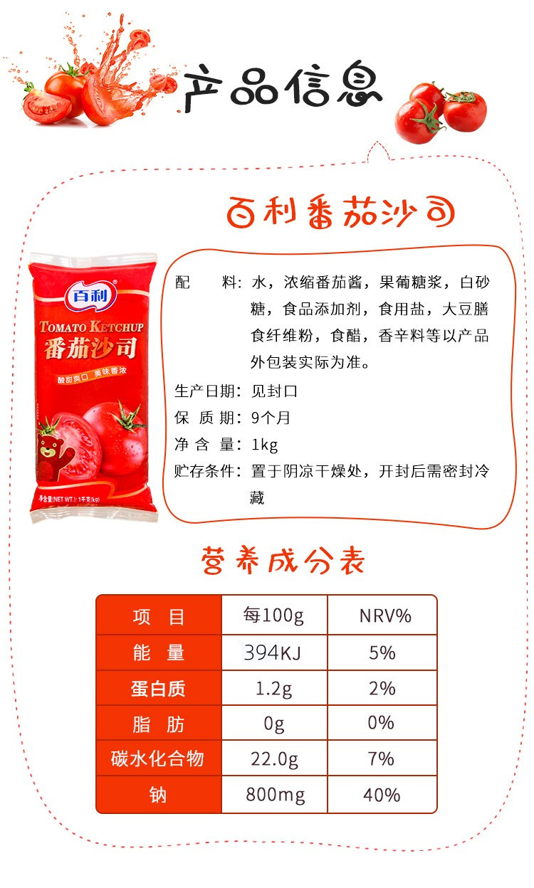 1kg 百利 番茄沙司 番茄酱披萨汉堡寿司薯条炸鸡蘸酱烹饪酱料