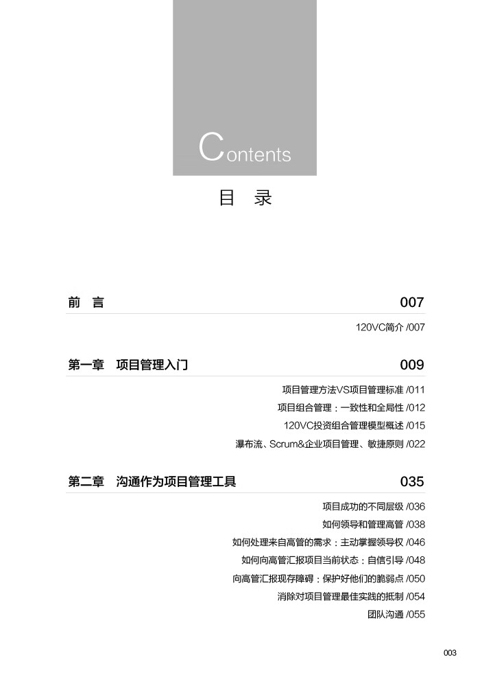 120VC是一家专门培训项目经理的机构,作者杰森·斯科特是这家机构的CEO。他所领导的每位120VC的团队成员都践行了服务型领导的精神,并成为了所有其他人都渴望成为的领导者典范。好的领导能够推动人类的前进,优秀的领导者,能够激励周围的人勇往直前。而优秀的领导者也已经证明,卓越的领导力无需官方授权,只要求我们能够将利益相关者的利益放在首位。