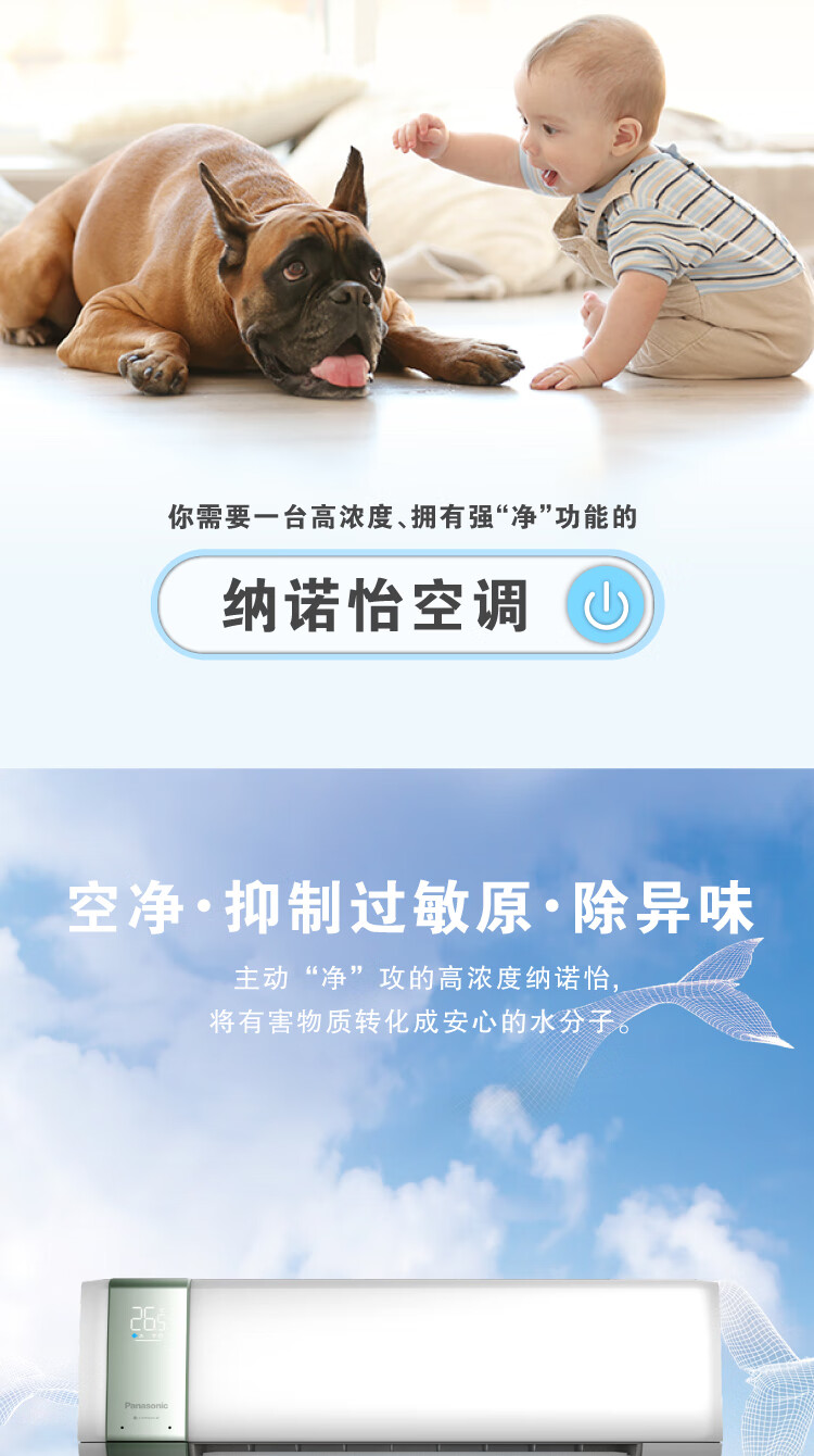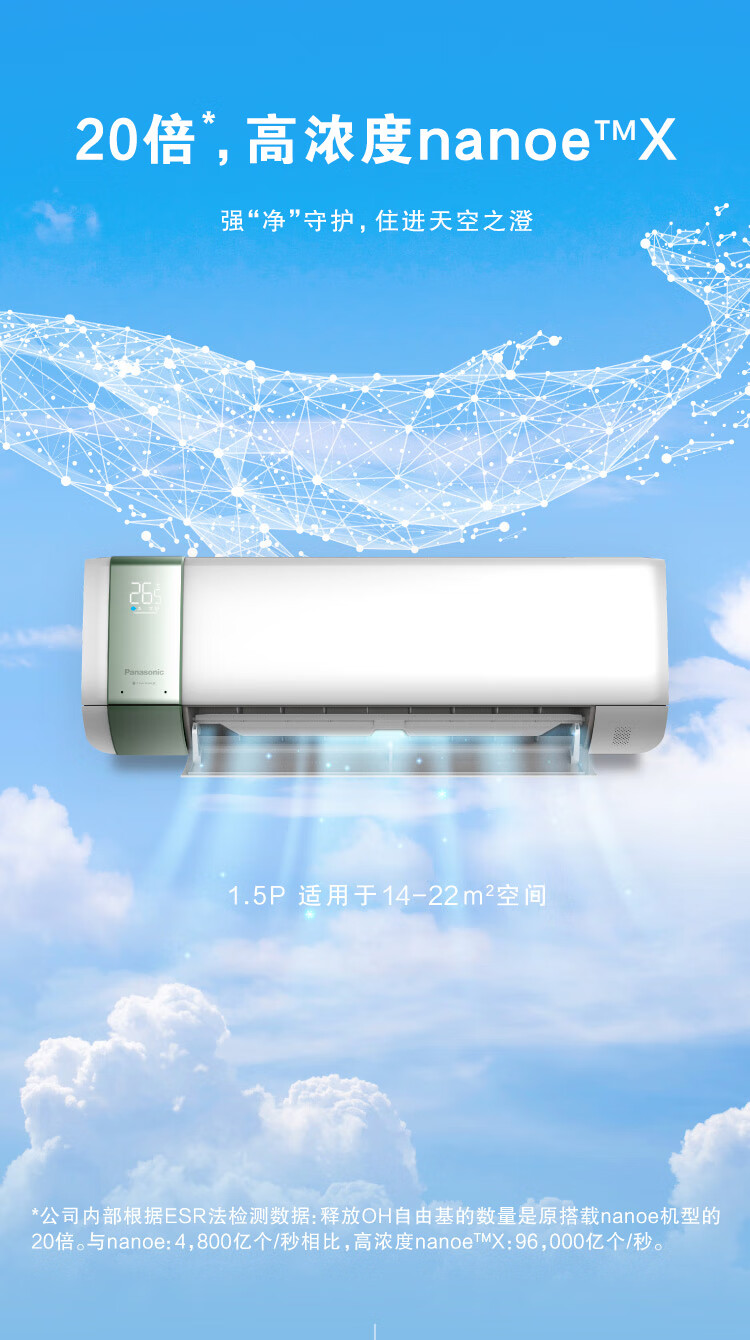 松下(Panasonic)新一级能效空调 20倍纳诺怡除菌自清洁壁挂式挂机强速冷暖醇风系列 【大1匹】J9KR10/J13KR10
