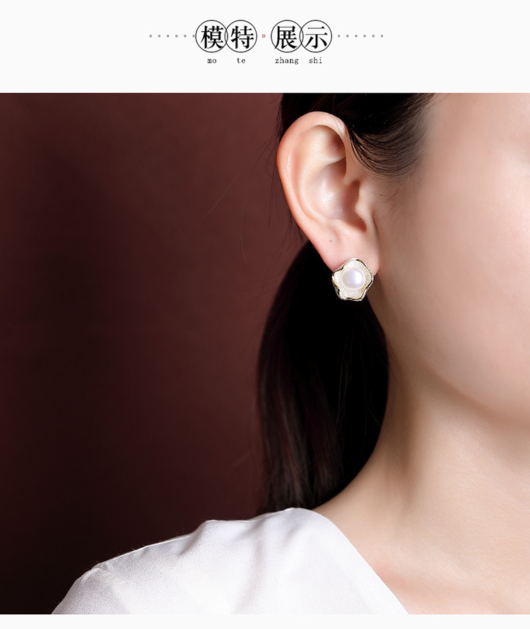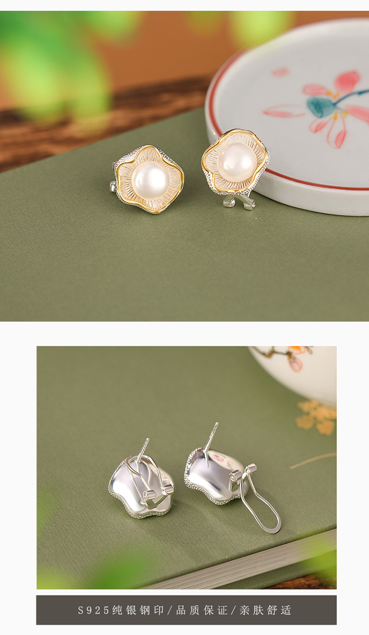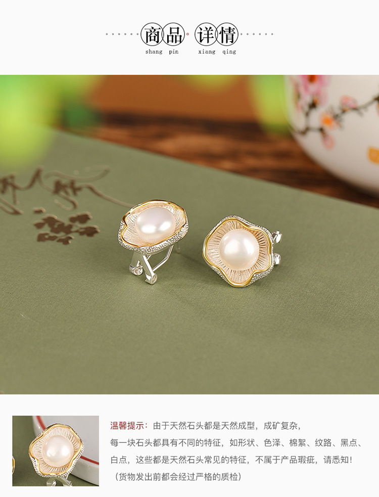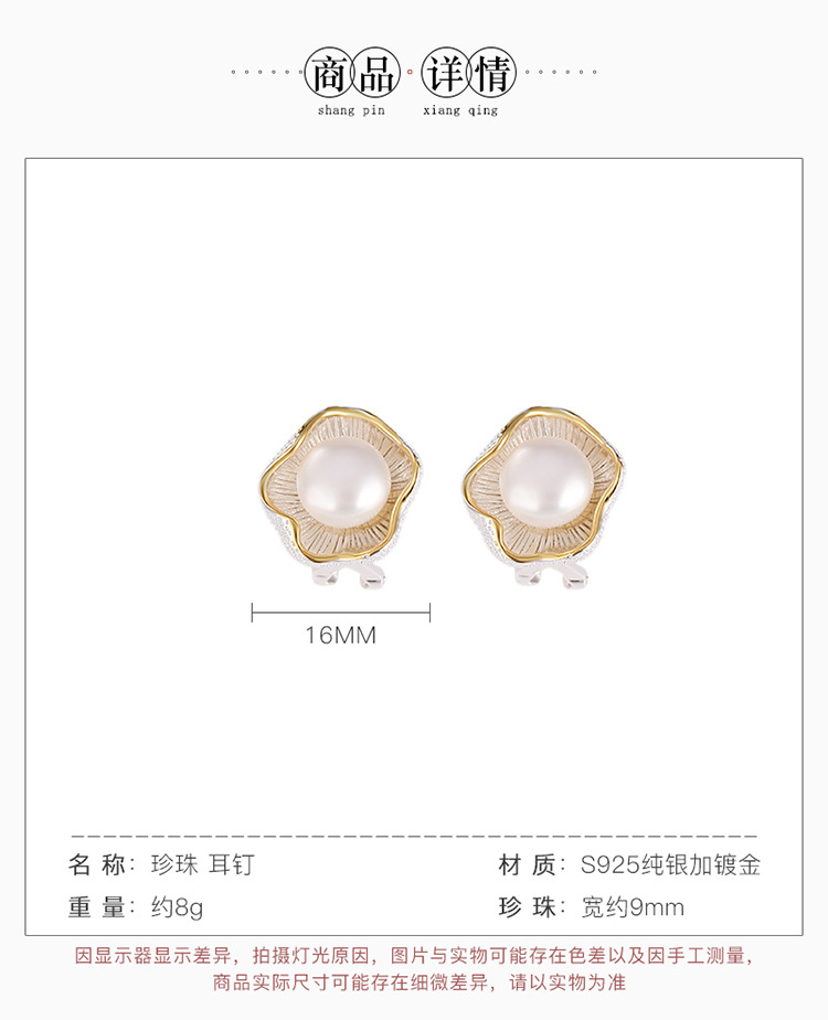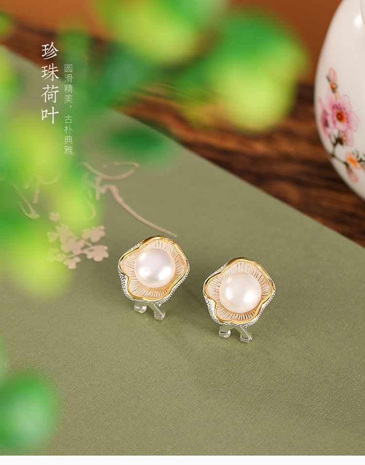 【荷叶清露】S925纯银镀金淡水珍珠荷叶花苞耳钉【CW-ED03029】
