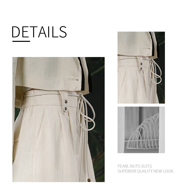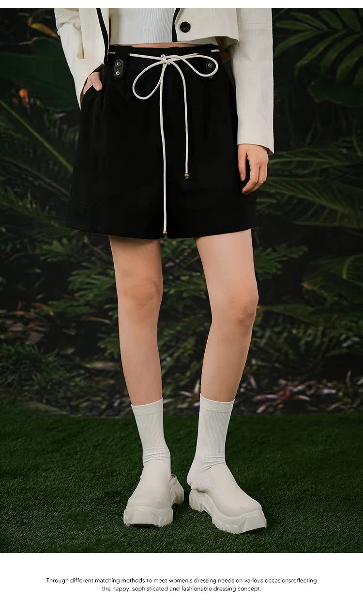 NUTS春秋季新款通勤气质简约高腰系带短款休闲裤女418072446