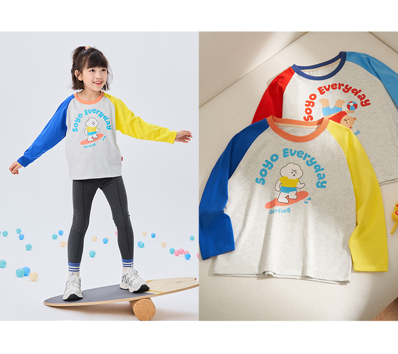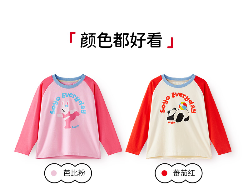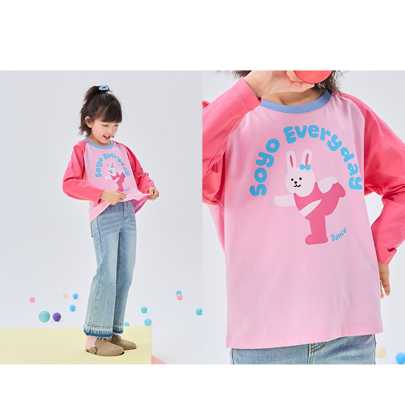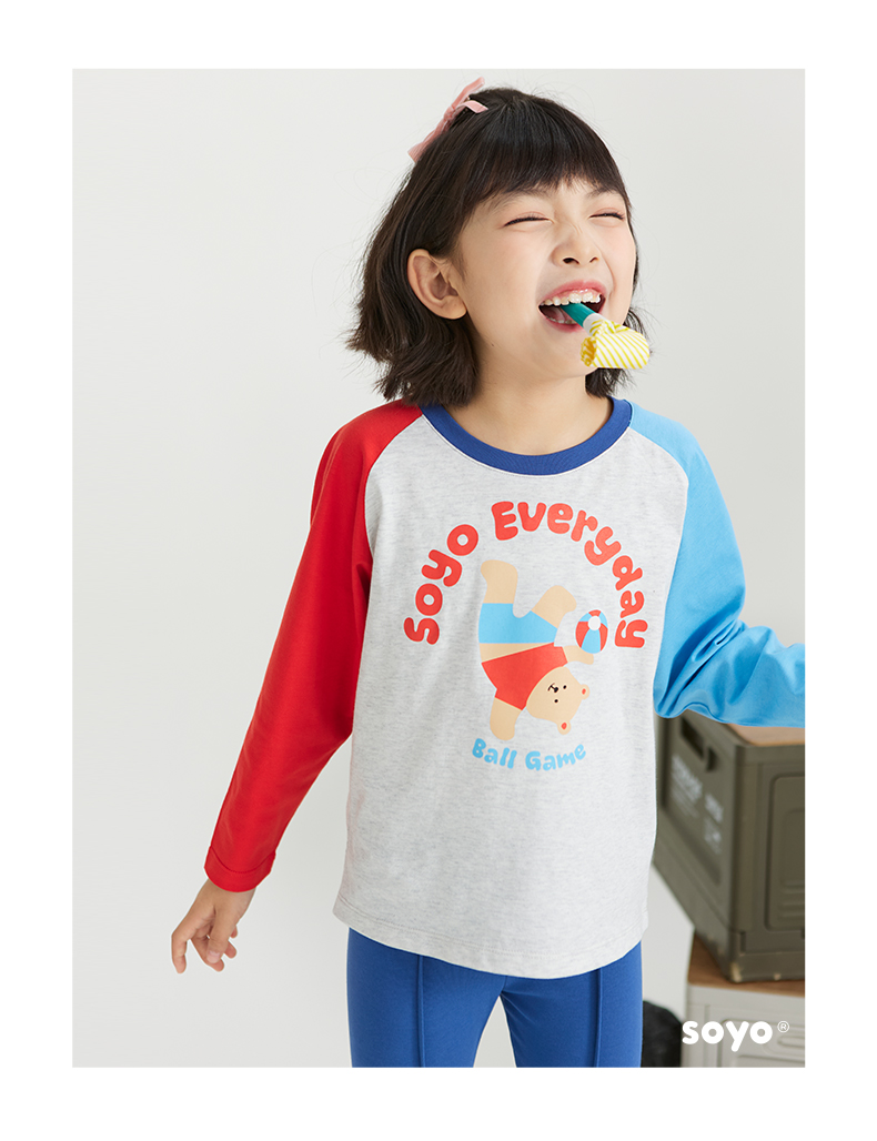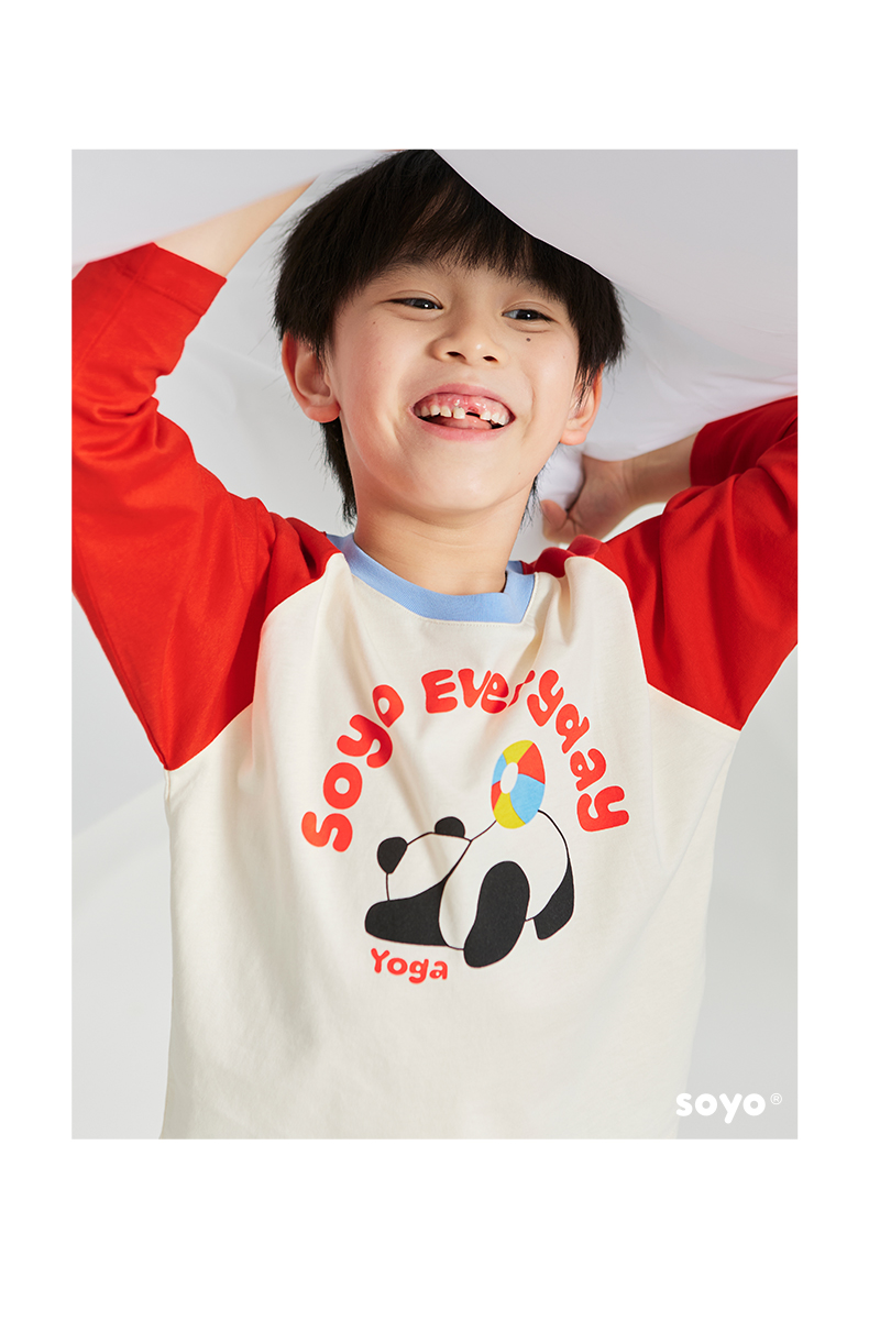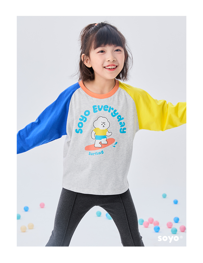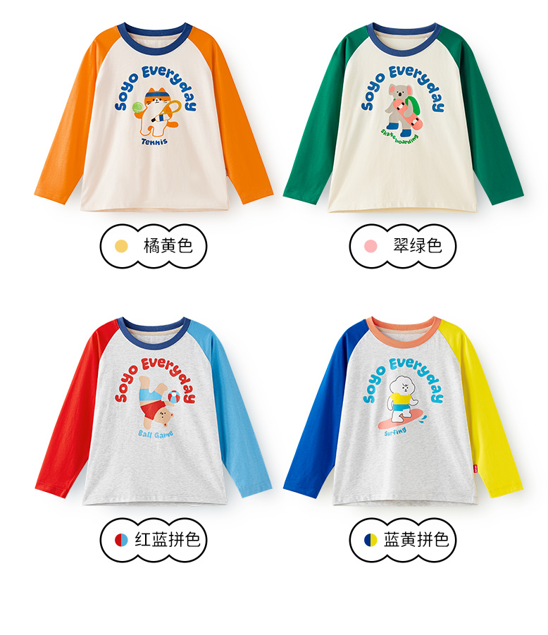 (原79元-现直降10元)soyo舍予良仓25新款可爱动物插肩袖拼色T恤