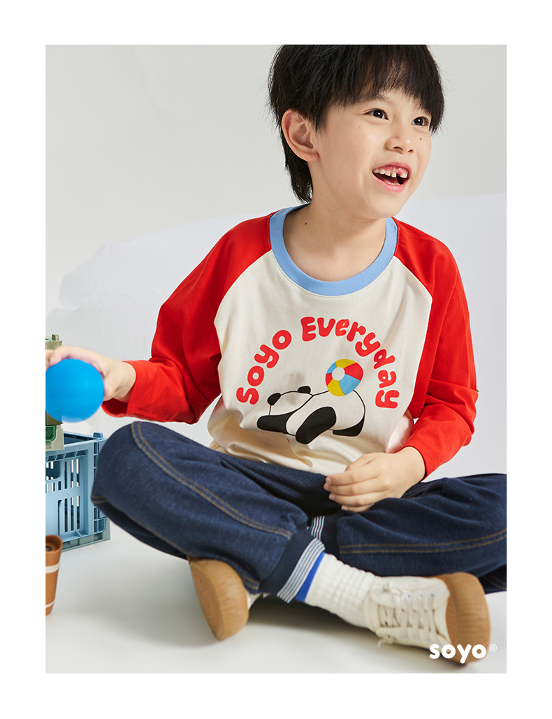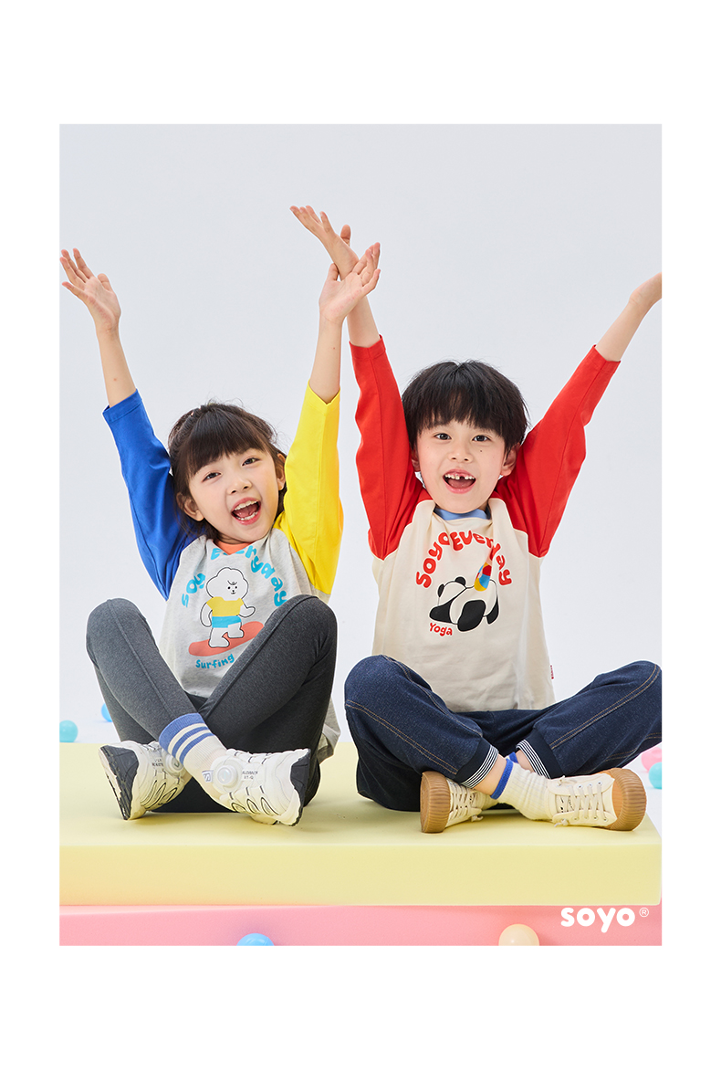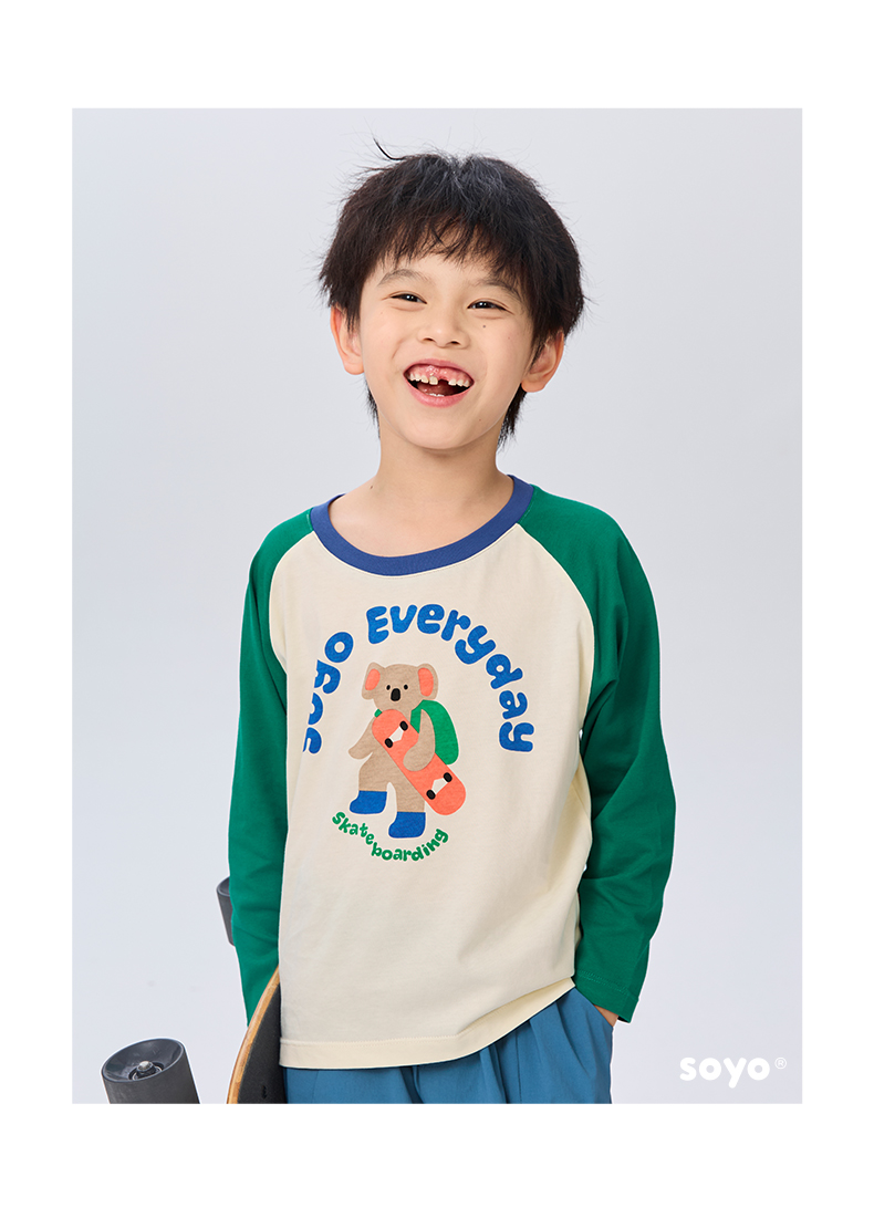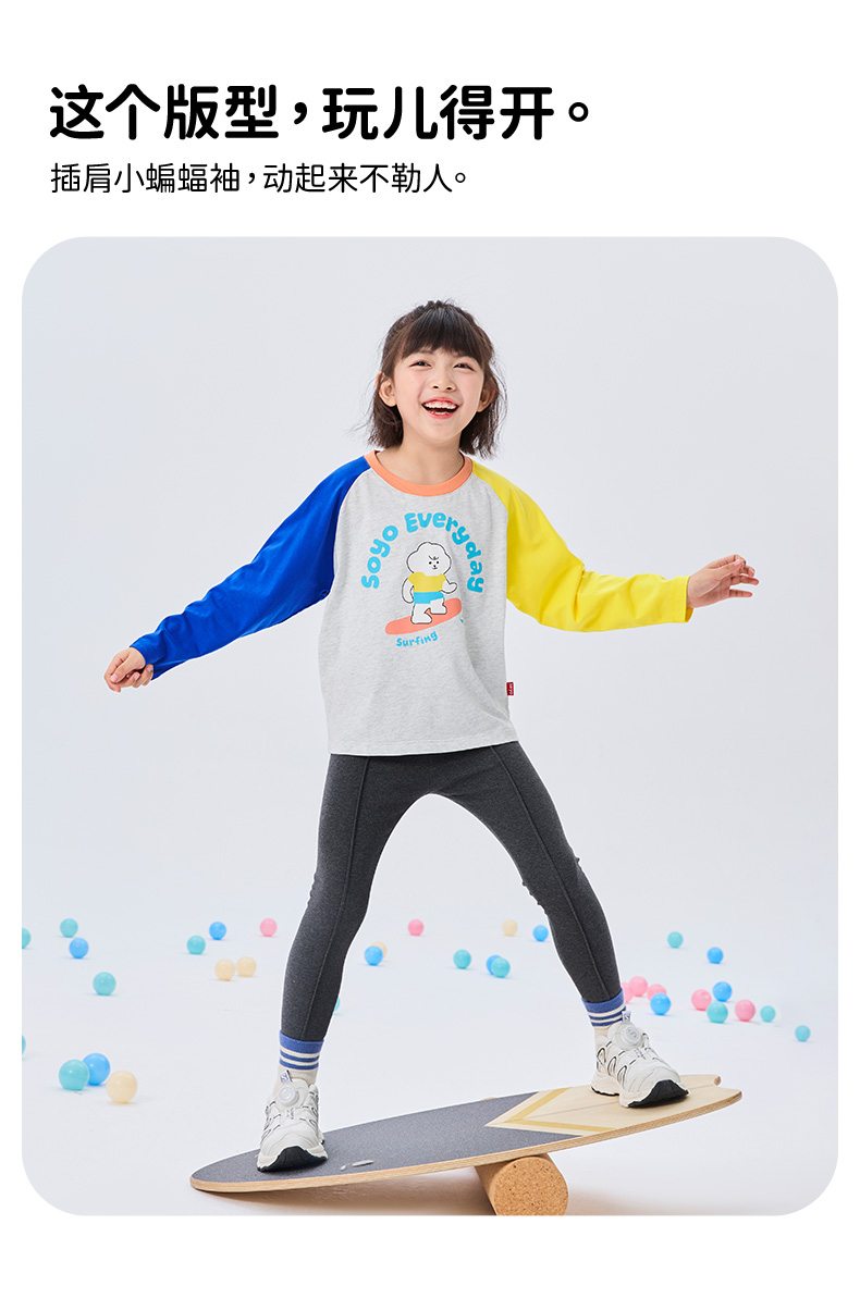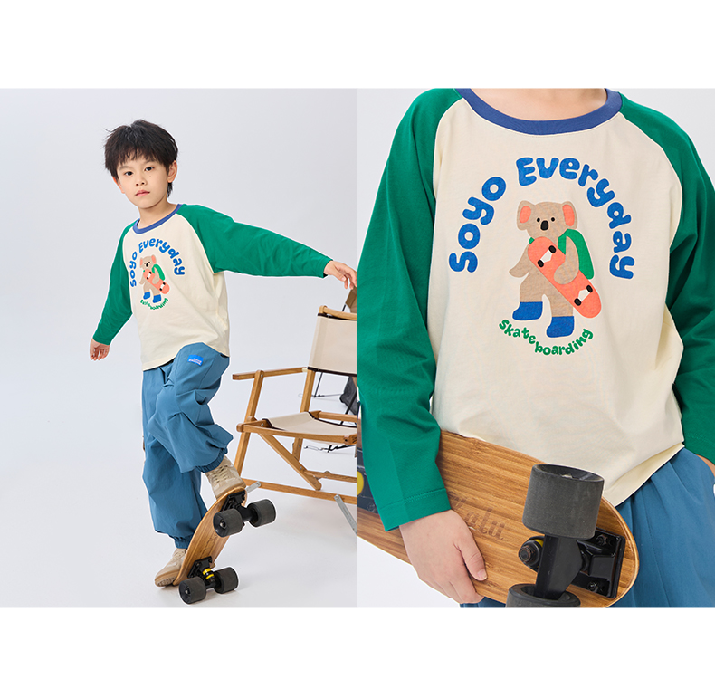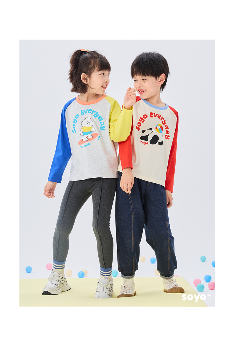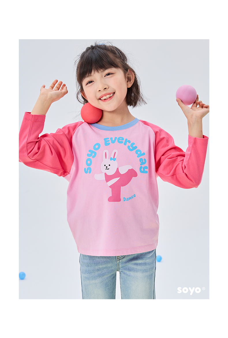 (原79元-现直降10元)soyo舍予良仓25新款可爱动物插肩袖拼色T恤