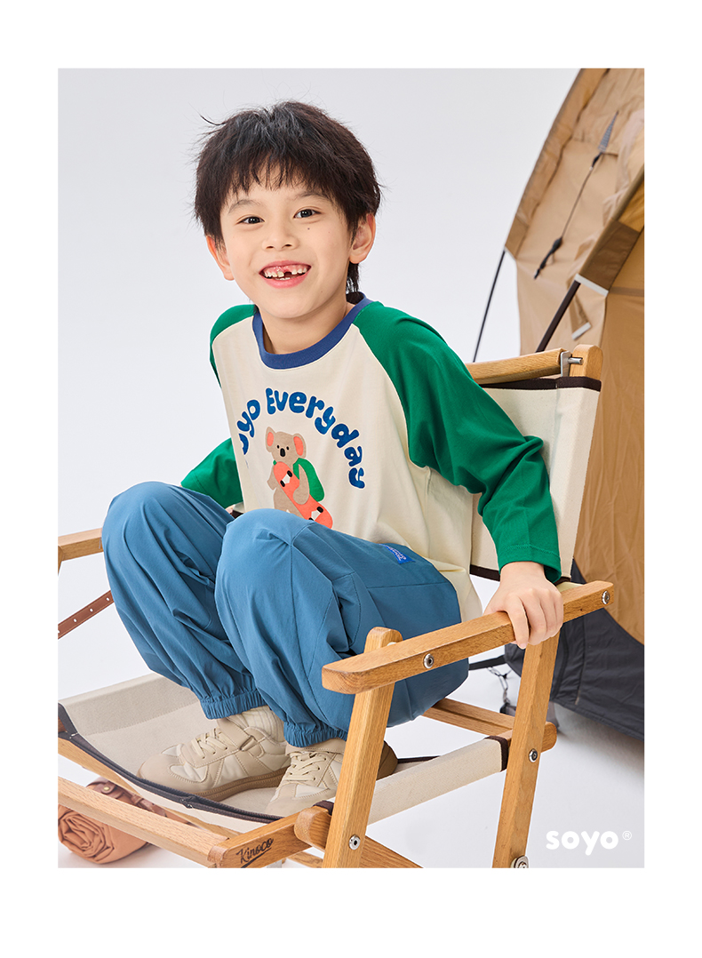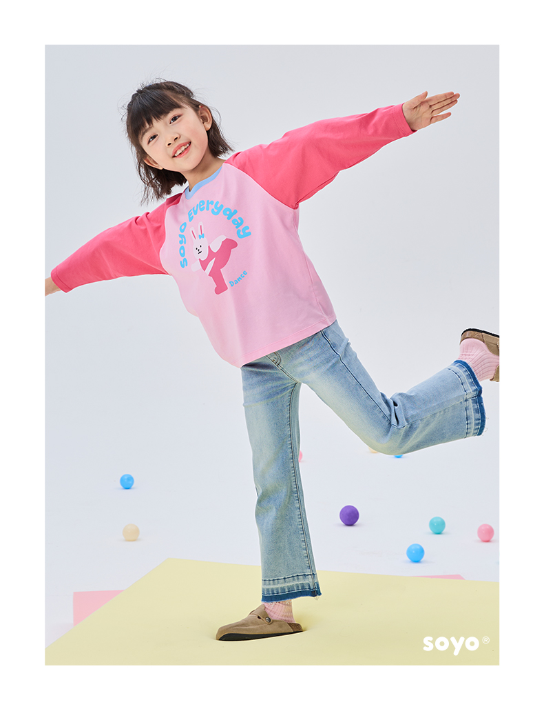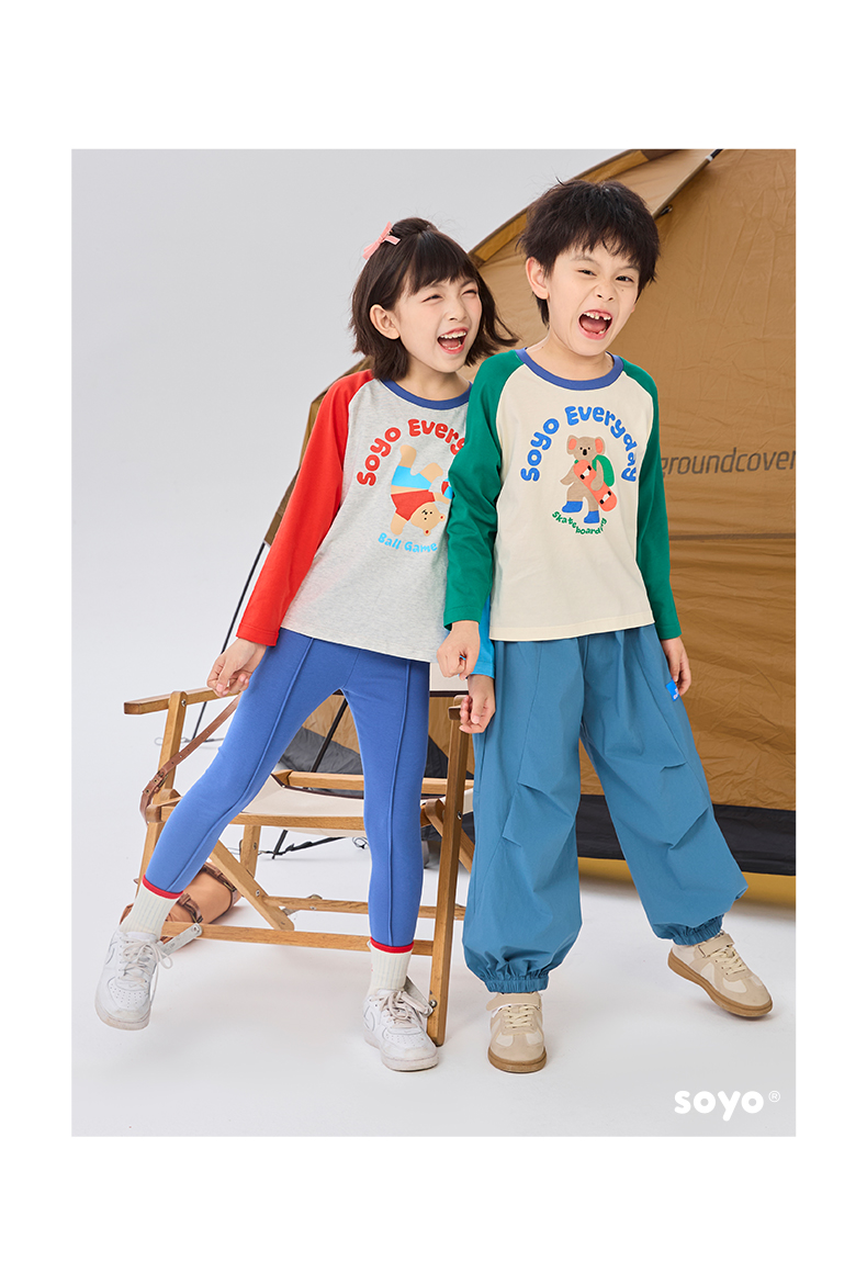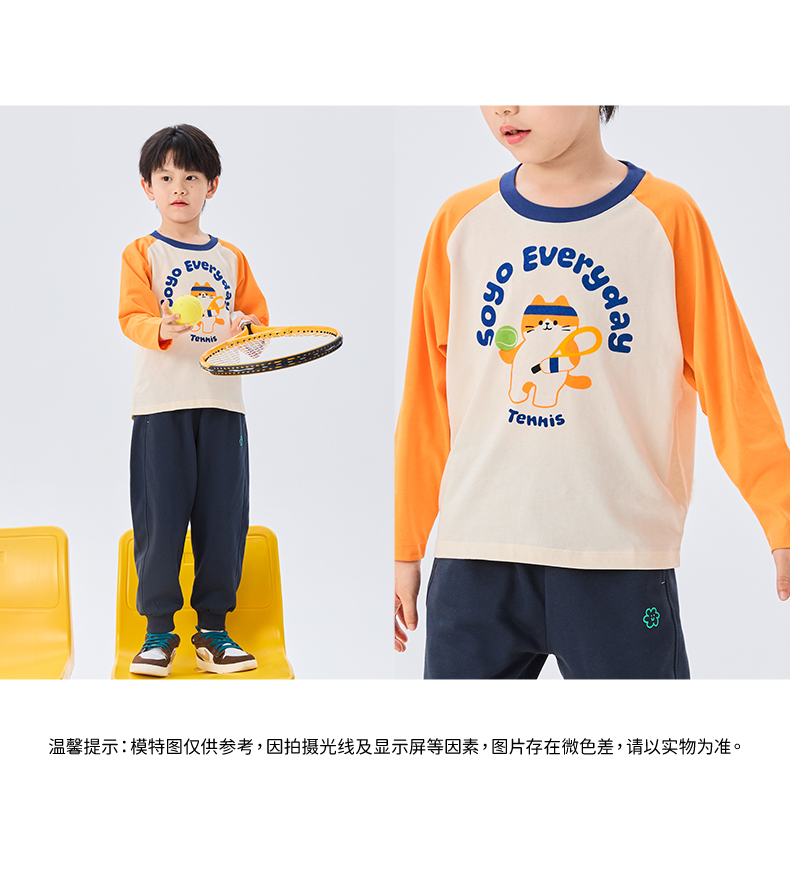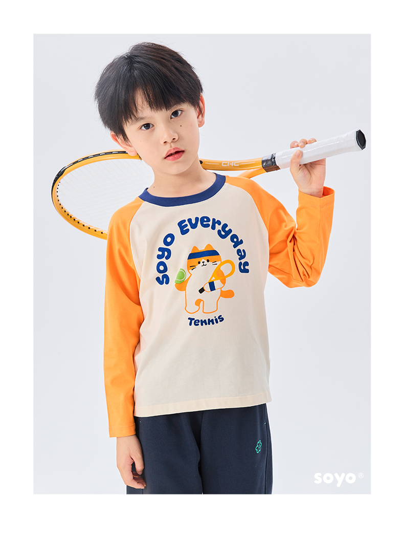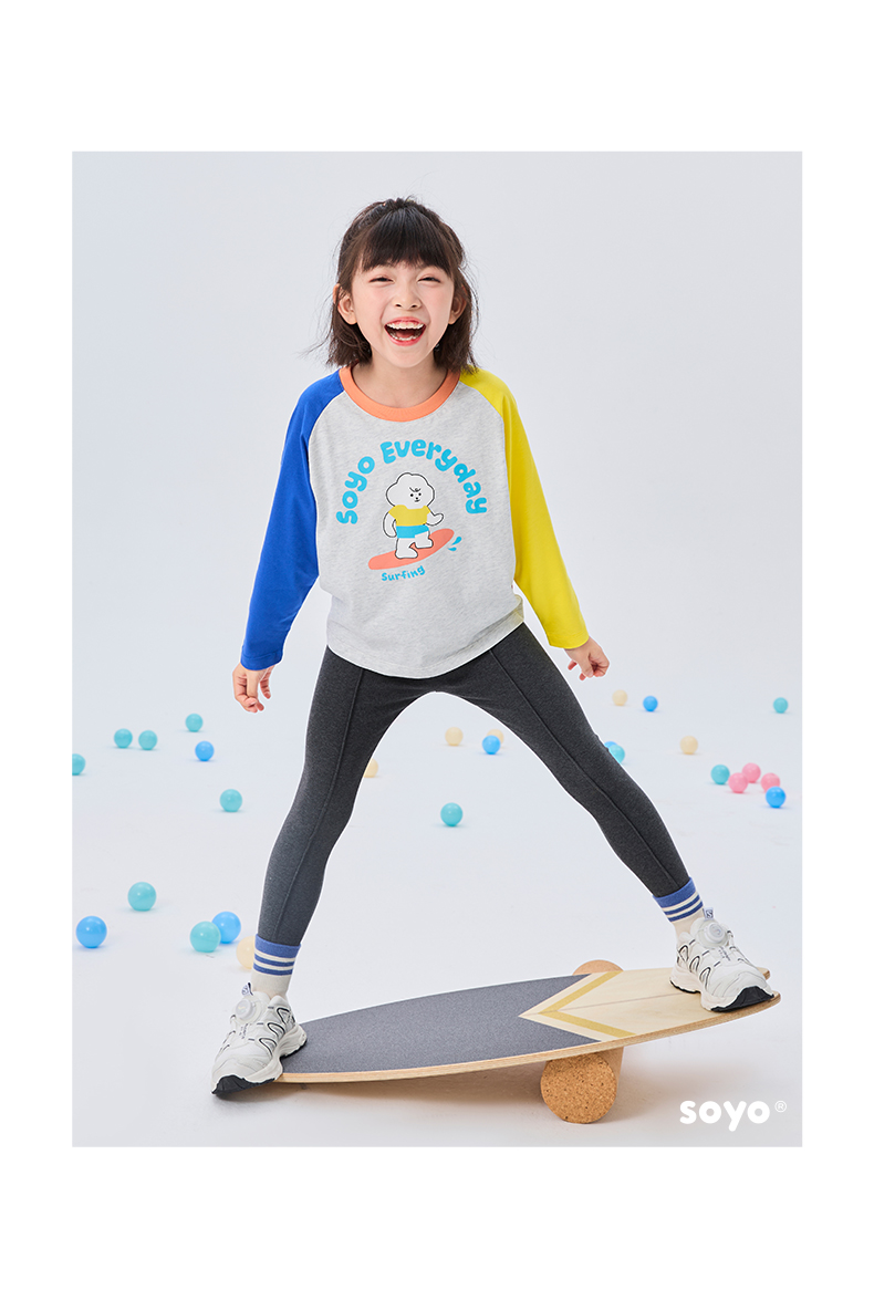 (原79元-现直降10元)soyo舍予良仓25新款可爱动物插肩袖拼色T恤