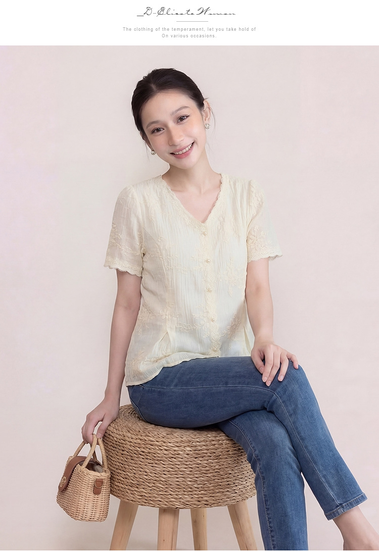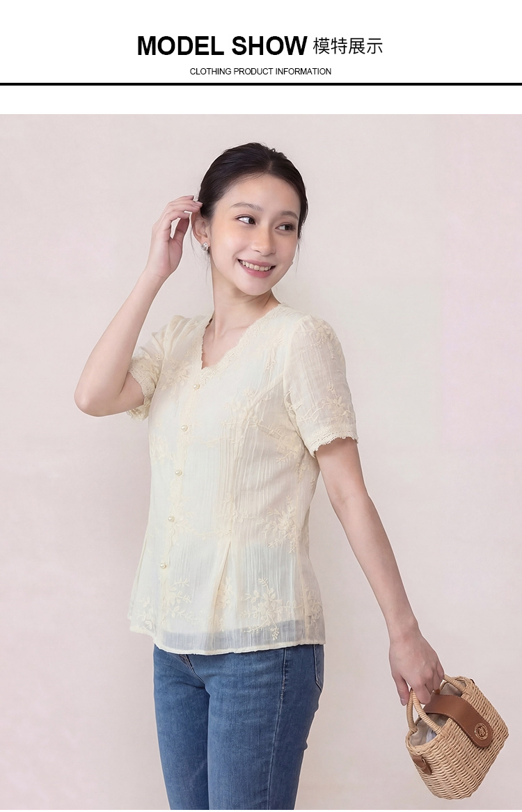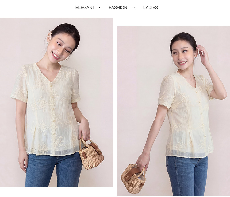 奢姿大码女装2026夏季减龄立体绣花雪纺衬衫胖妹妹V领时尚上衣9962254597