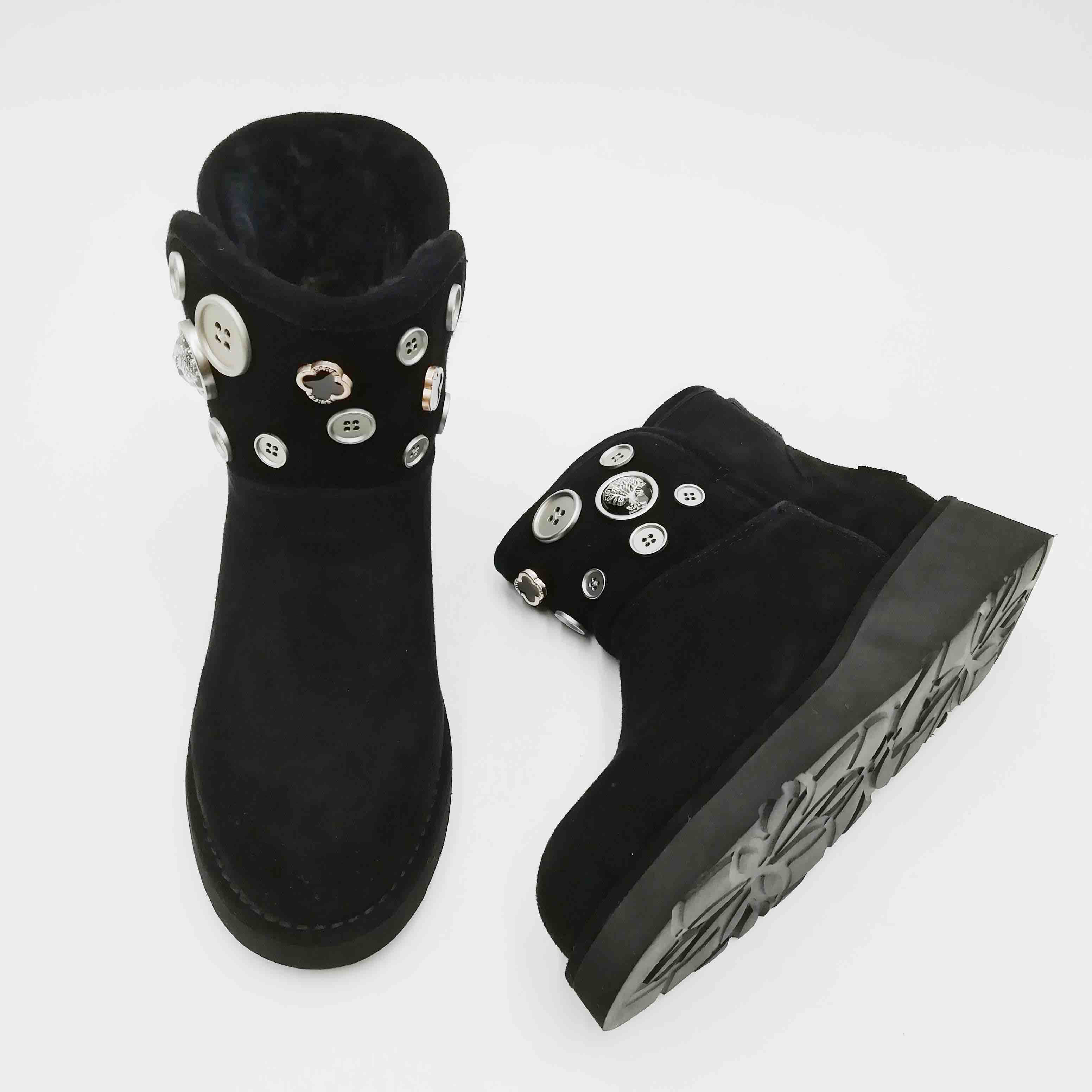 LFGJ 8703 真皮雪地靴女冬季牛反绒皮大棉厚底磨砂皮松糕底