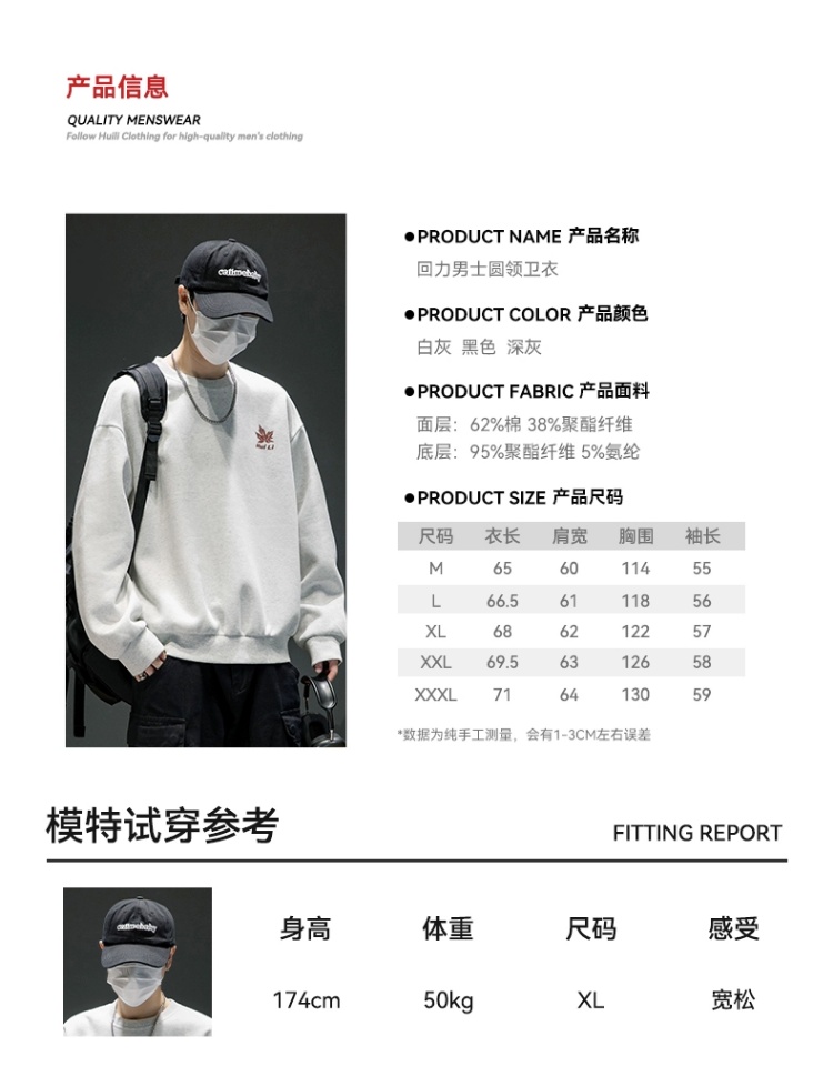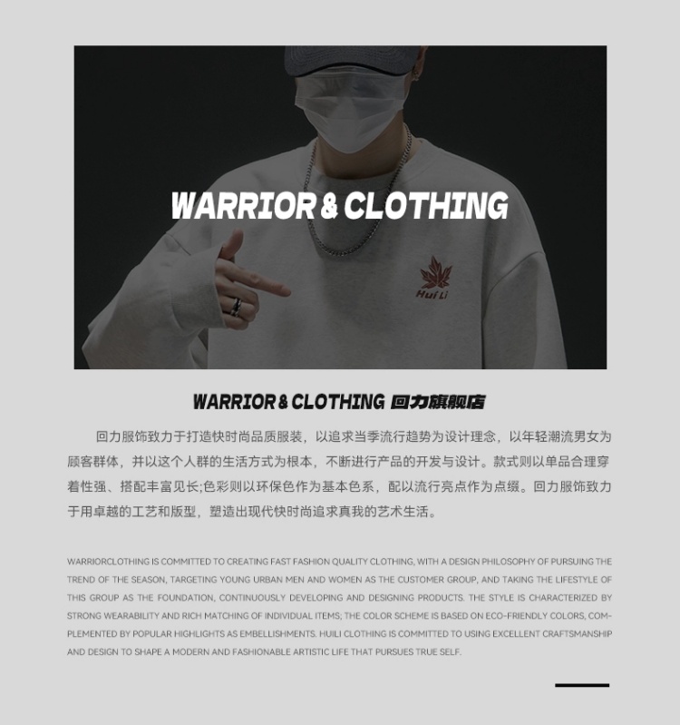回力卫衣男春秋款圆领宽松长袖上衣2025秋季新款男士无帽休闲外套