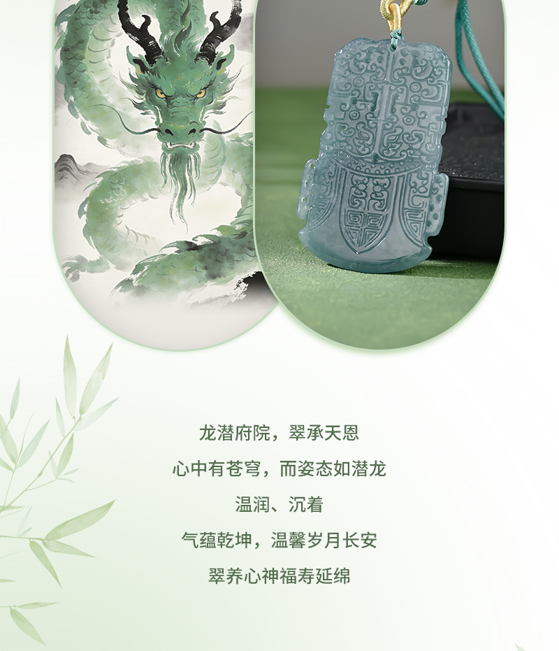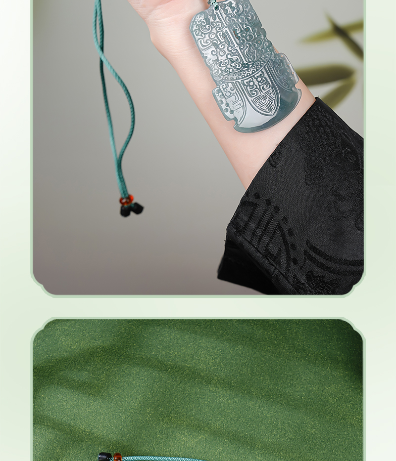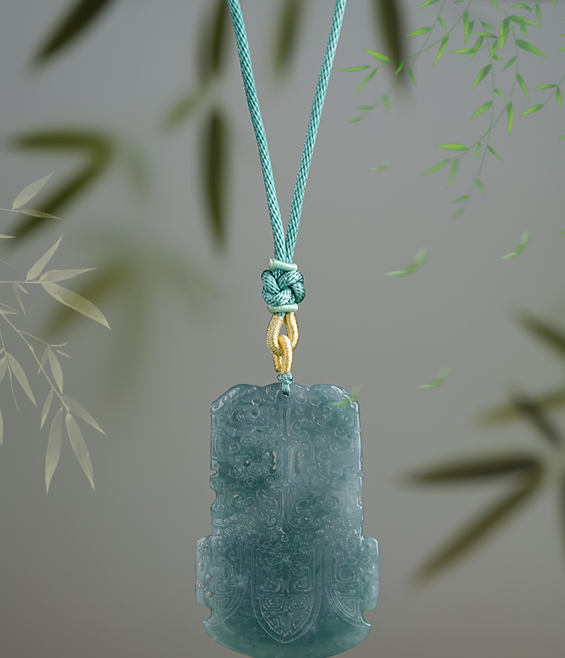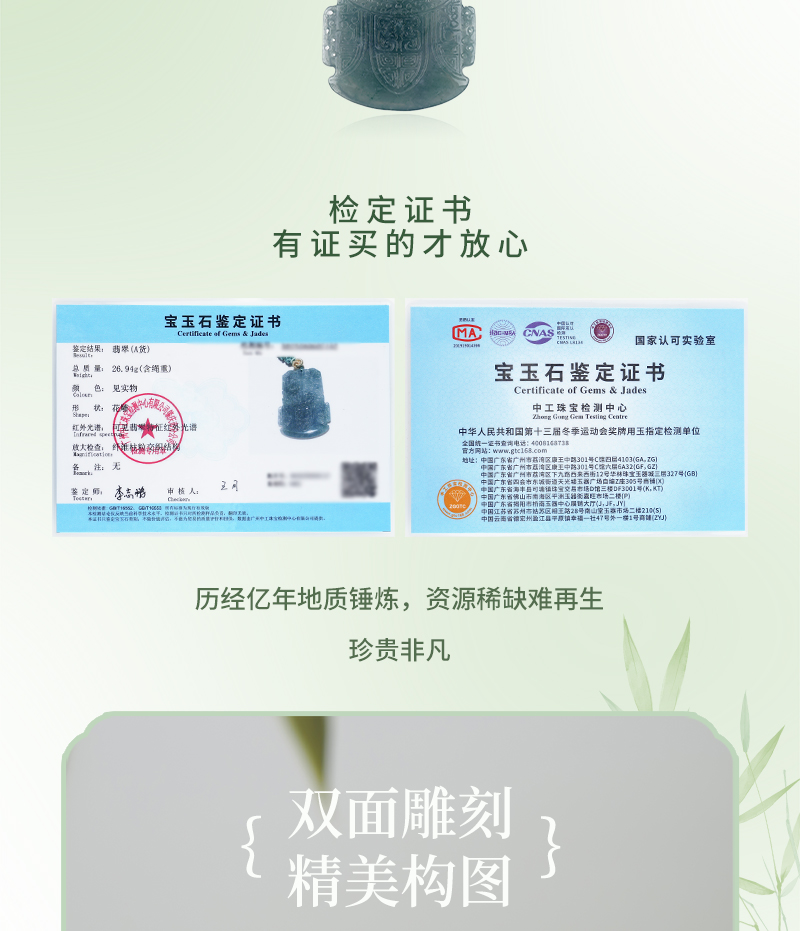翡翠A货双龙饕餮剑形玉牌吊坠双面浅雕工精湛带证书颈饰男女同款