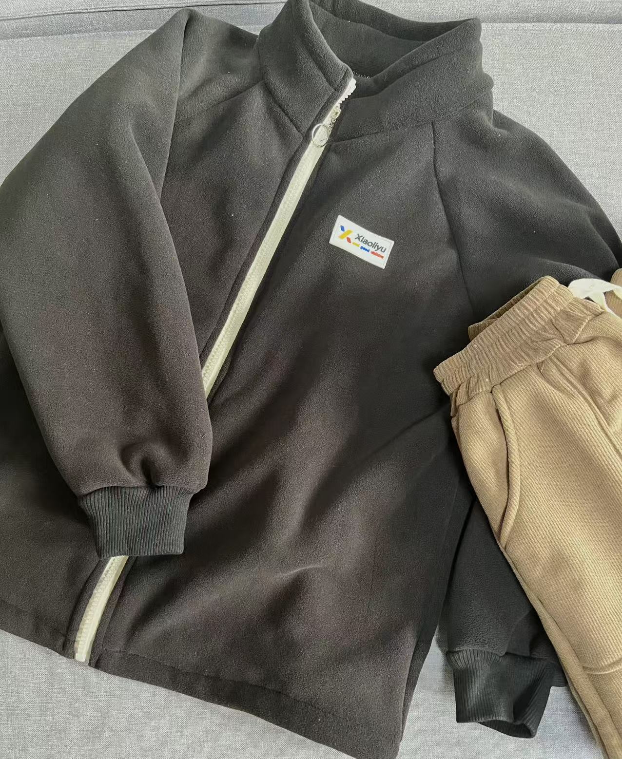 卫衣是小立领拉链设计,澳粒绒的本身就柔软蓄热,宝贝们冬天穿,既不会妨碍运动,又足够保暖!裤子是收口宽松版型,软软的,肉眼可见的舒适~里面都是厚厚的绒!