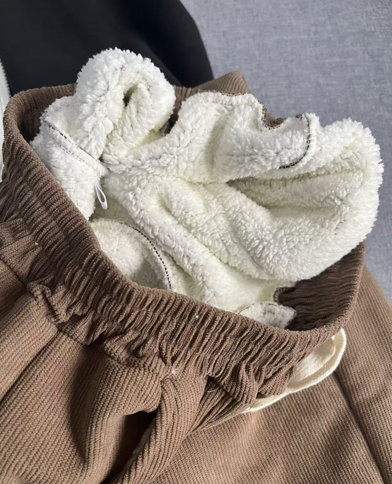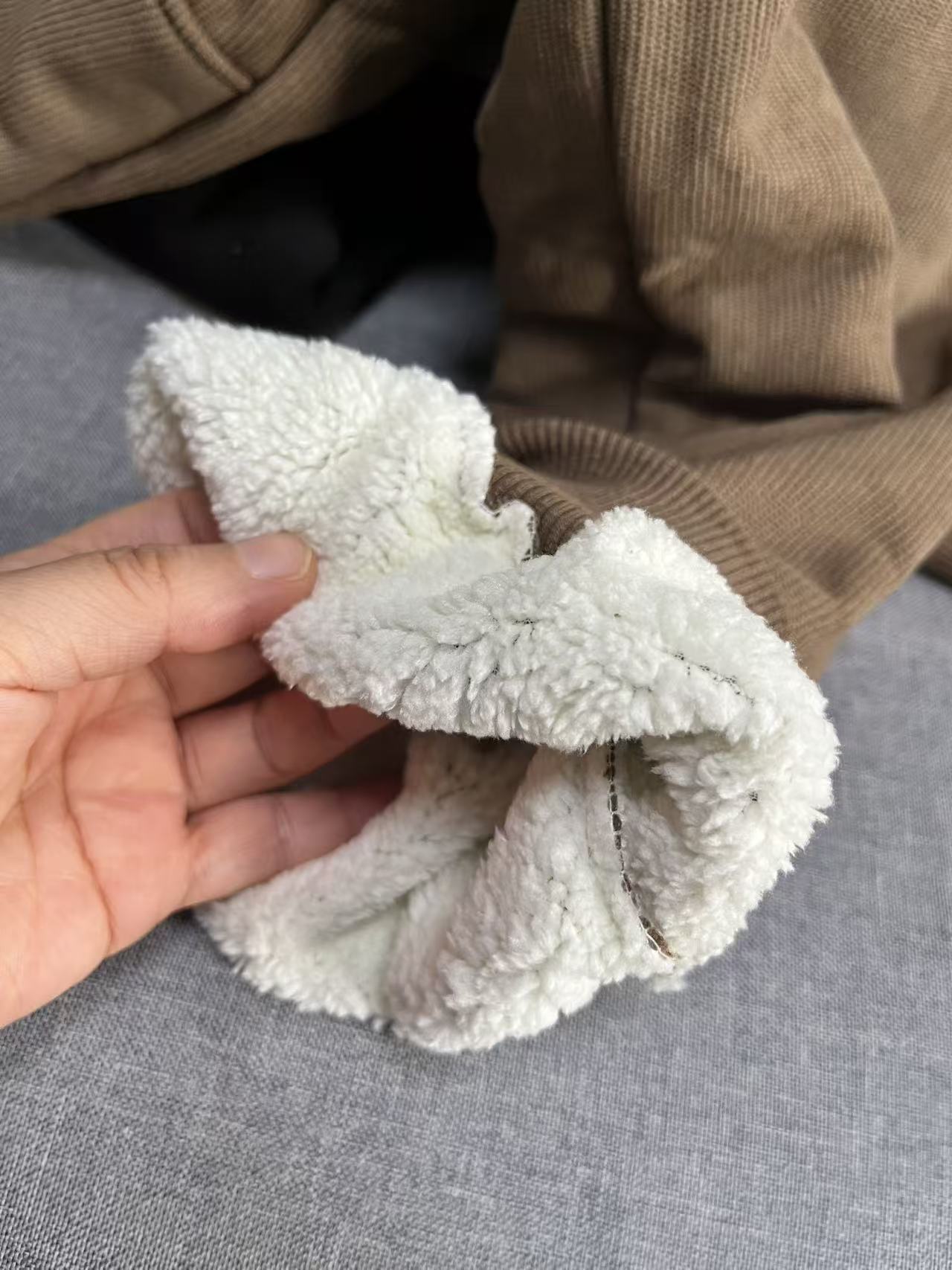 超级厚实的加绒,看着就很温暖~~ 这种绒绒品质差一点很容易掉,但我们这款不会哦!确保舒适不脱绒~