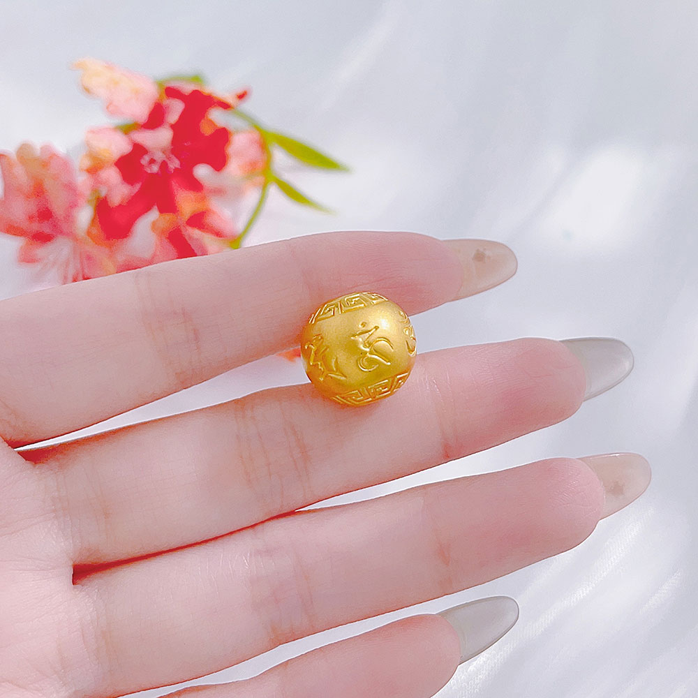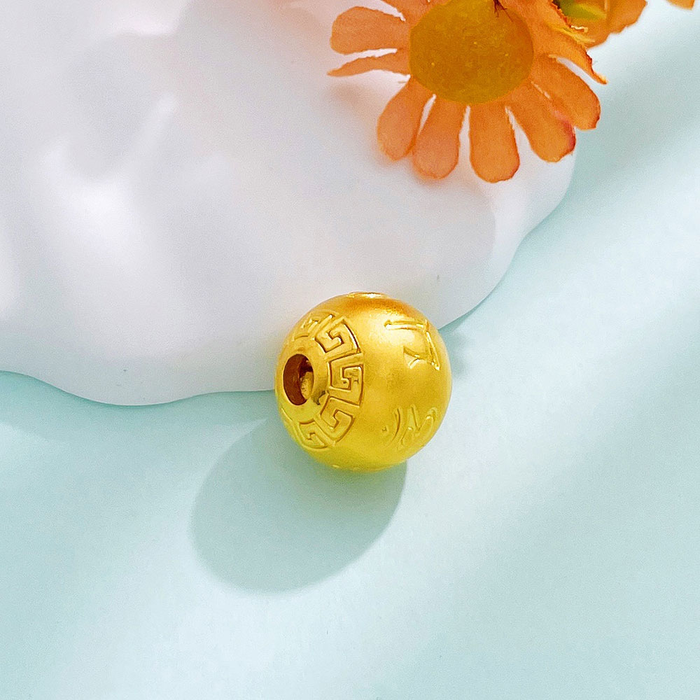 【限时7.5折】【定价黄金】足金 3D硬金空心六字真言回纹转运金珠手串配件Diy手串配件(珠约13.3-14.3mm)(AU3DSC00037-2)预售产品下单后不退款不退货不换货不补差价