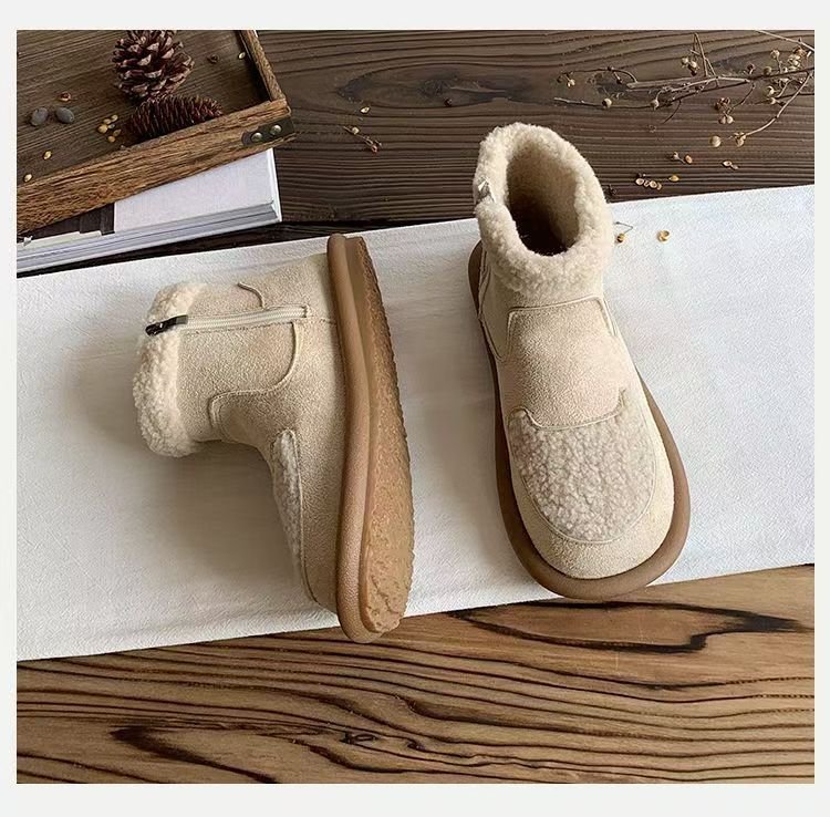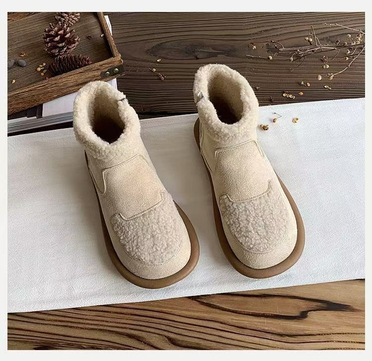 【69/双】防滑雪地靴女毛绒面勃肯短靴2025新款平底加绒加厚棉鞋冬季保暖鞋聚