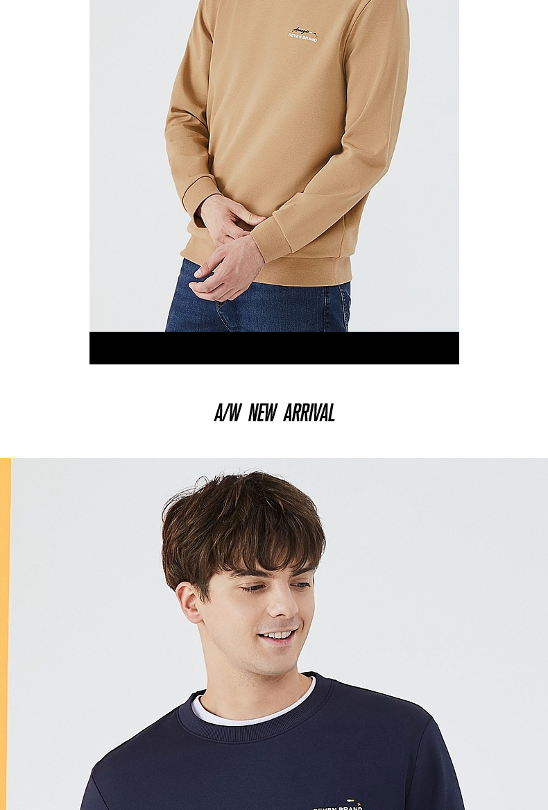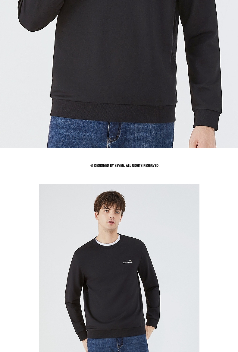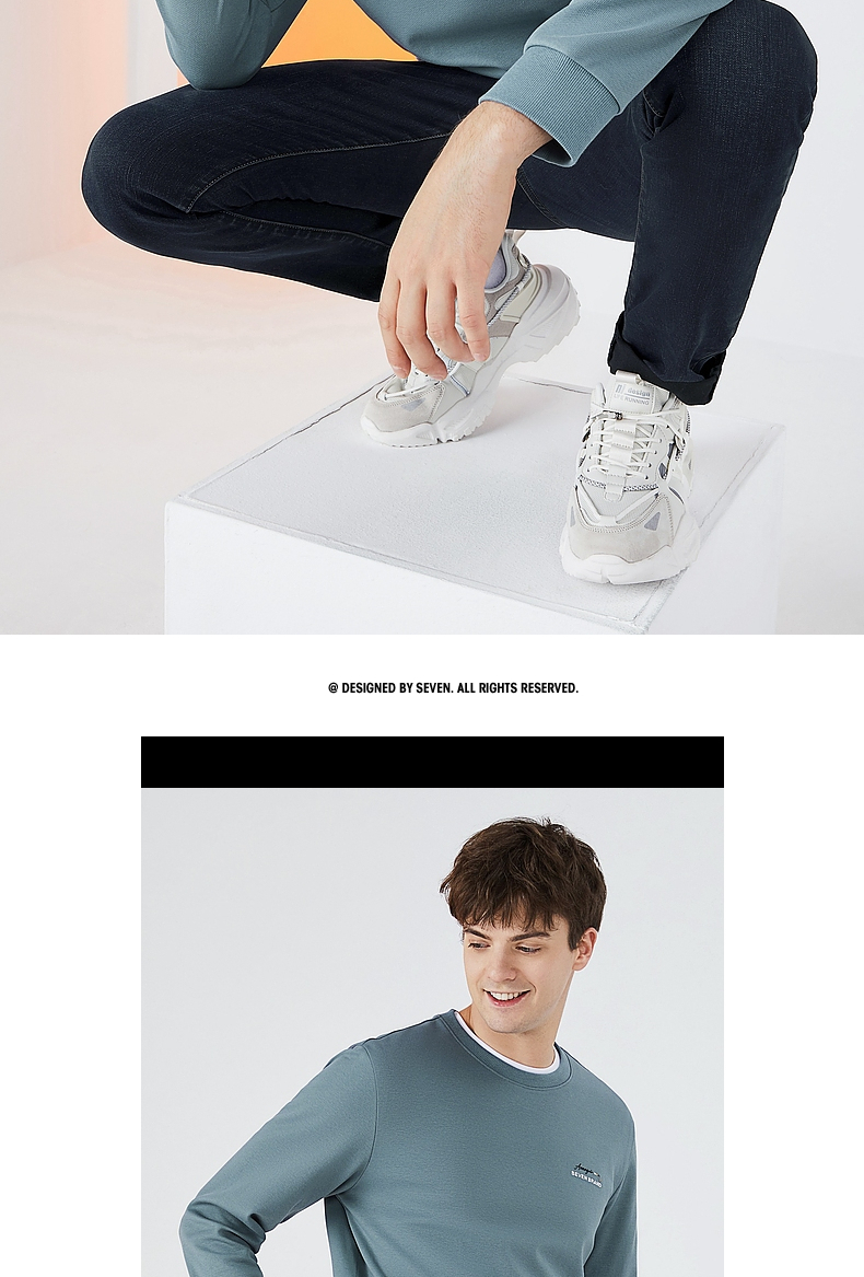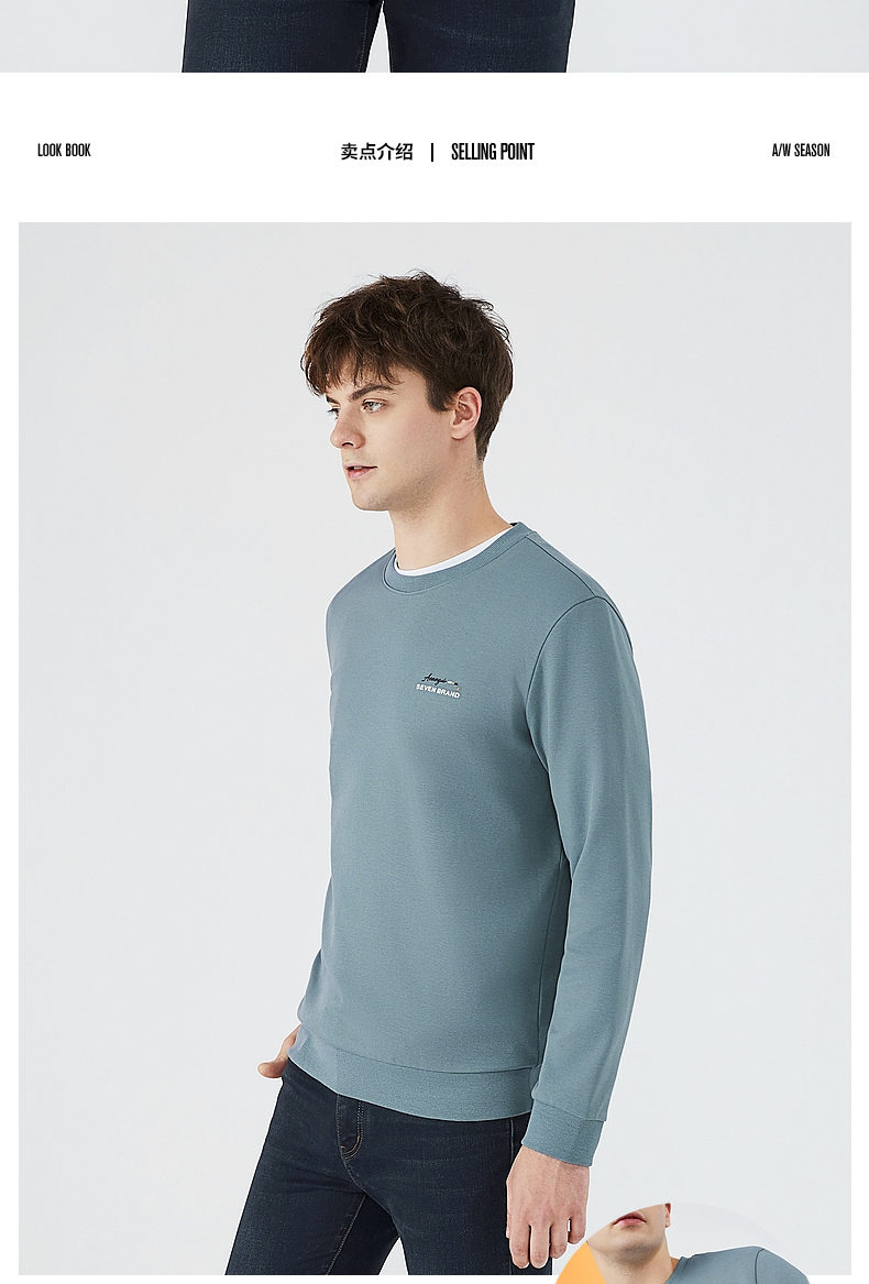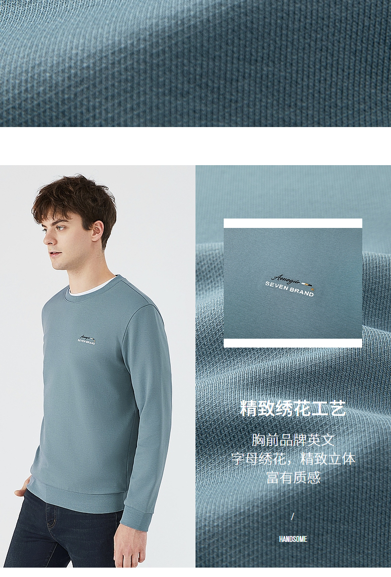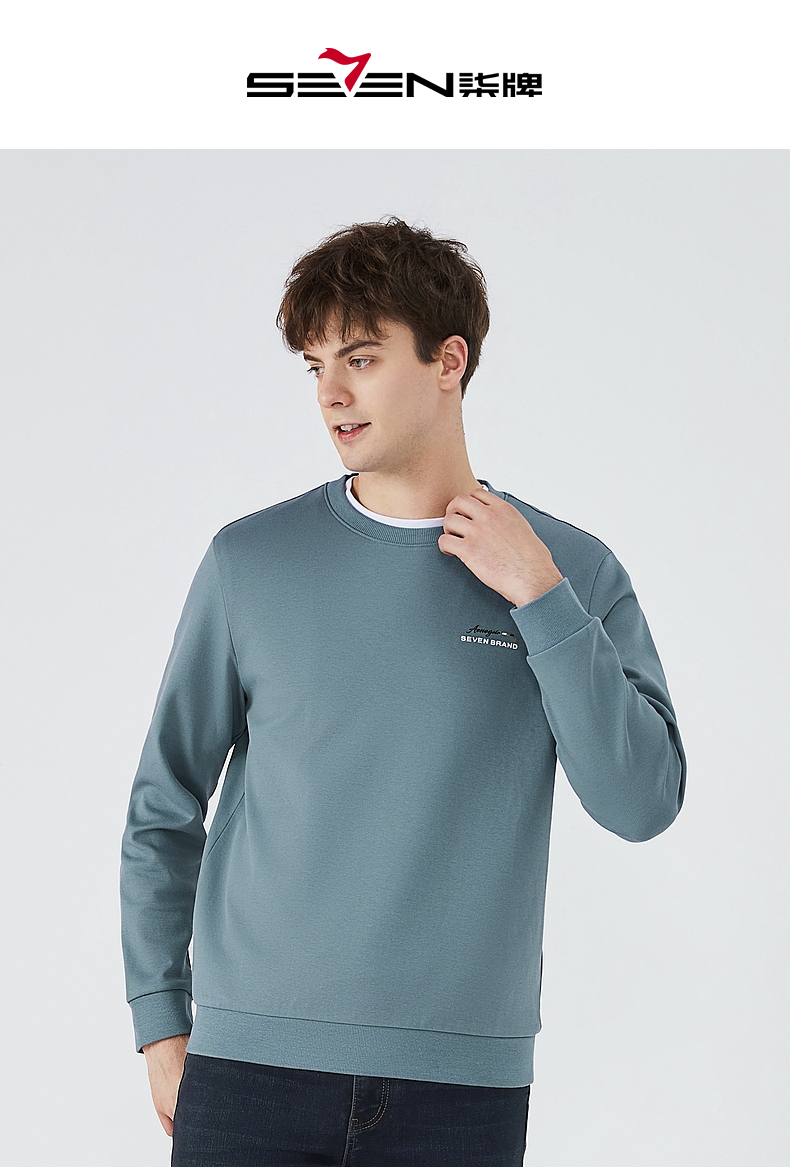【特价】柒牌男士圆领卫衣春秋款时尚百搭字母绣花长袖T恤中青年上衣 123W70290