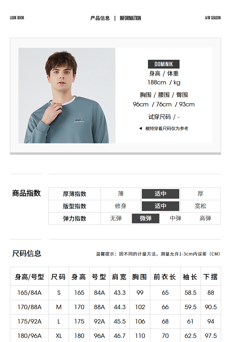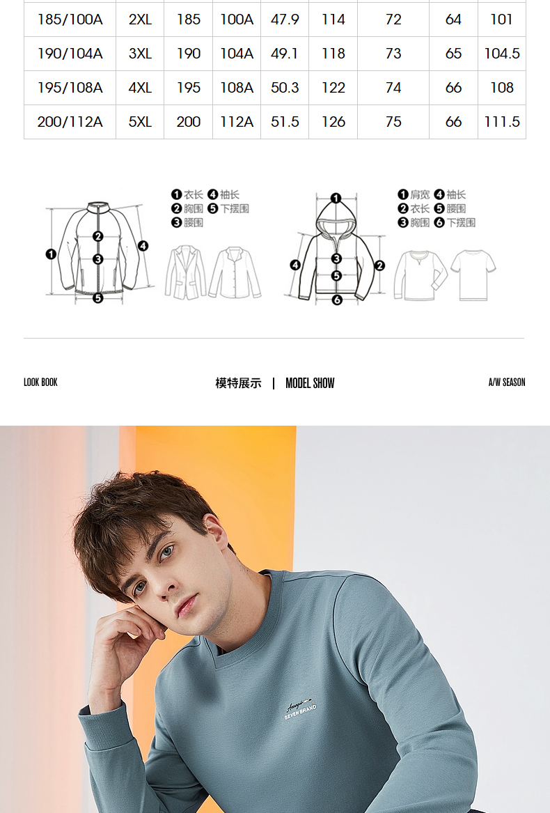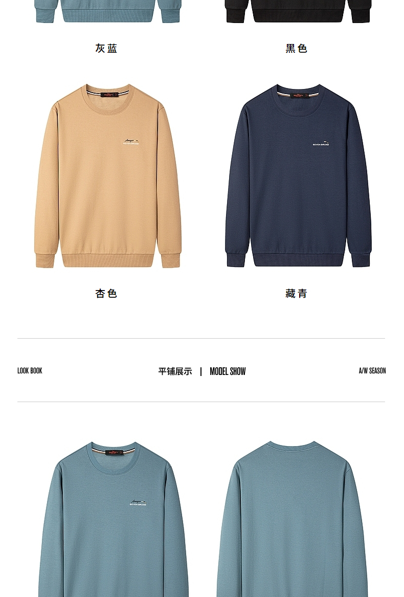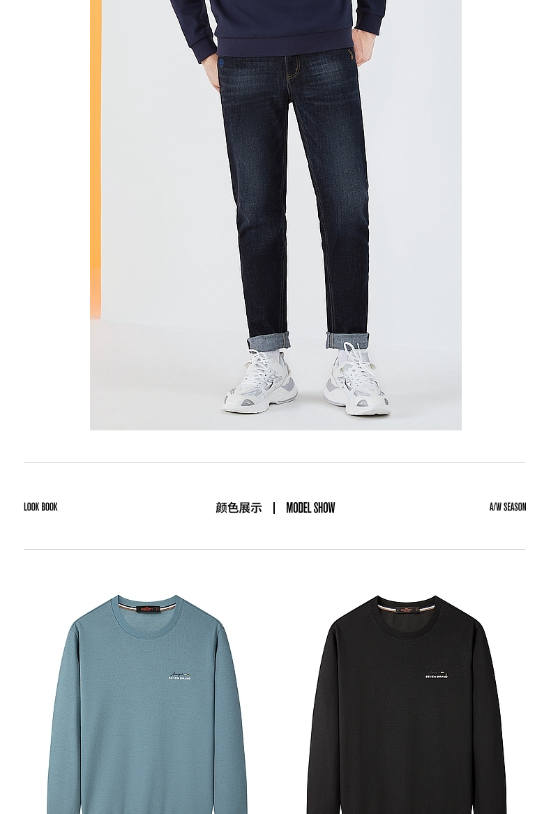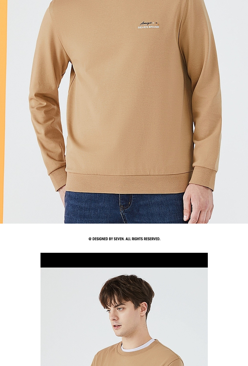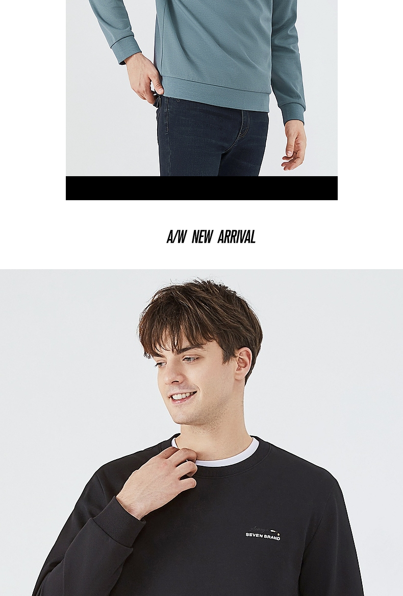 【特价】柒牌男士圆领卫衣春秋款时尚百搭字母绣花长袖T恤中青年上衣 123W70290