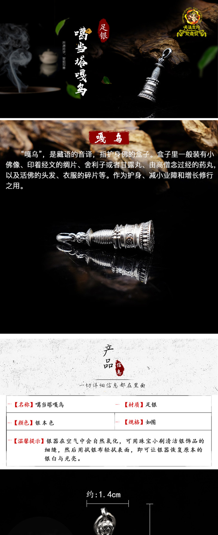 纯银嘎当塔嘎乌噶乌盒吊坠挂坠男女款(不包含挂链)