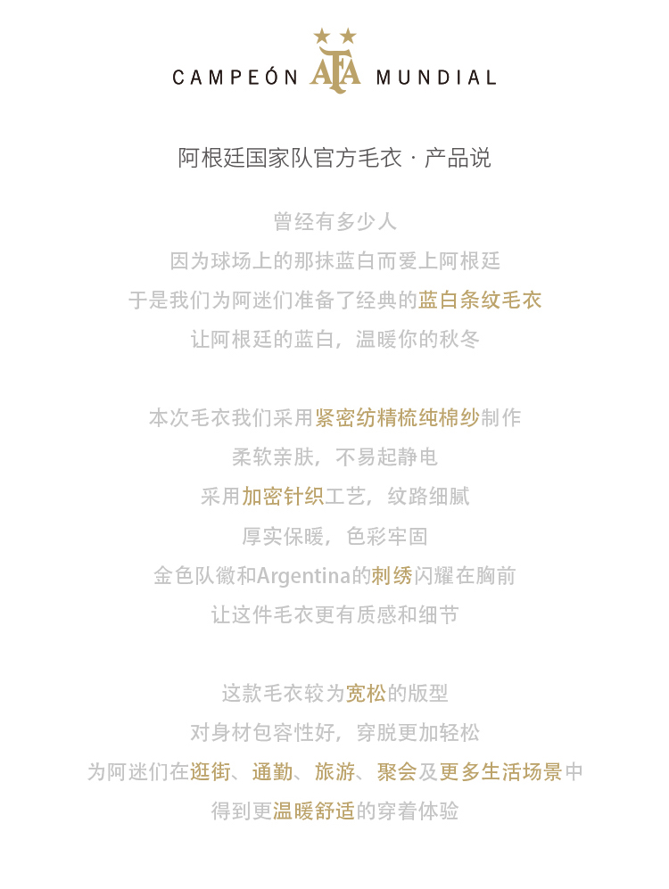 阿根廷国家队商品丨蓝白条纹毛衣男女加厚针织衫
