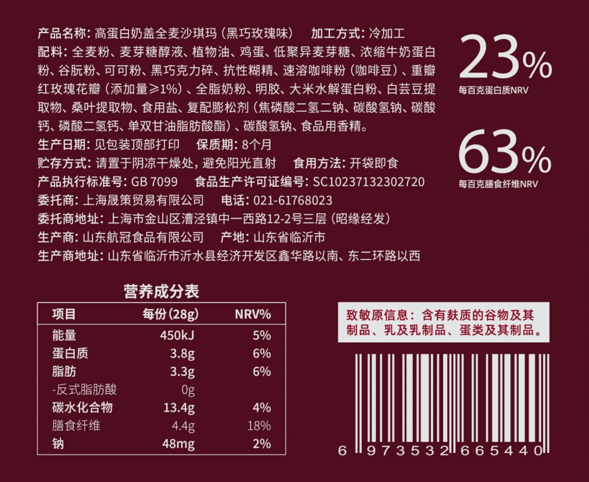 哥本优选高蛋白奶盖全麦沙琪玛 奥巧慕斯/伯牙绝弦/黑巧玫瑰 28g*6/盒