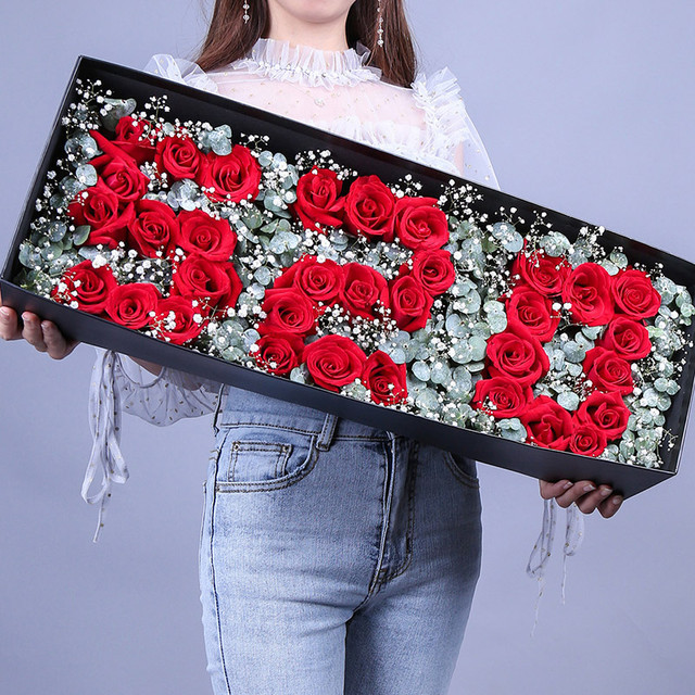 花材:33支红玫瑰,尤加利搭配,礼盒包装!