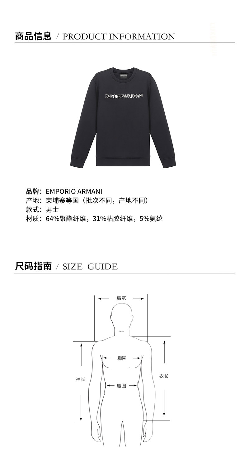 Emporio Armani/安普里奥阿玛尼 男卫衣 男士聚酯纤维圆领长袖卫衣运动衫 6H1MP1 1JDSZ
