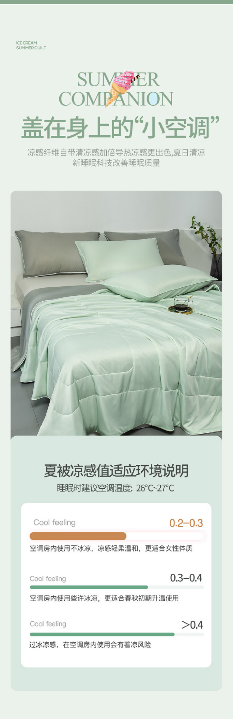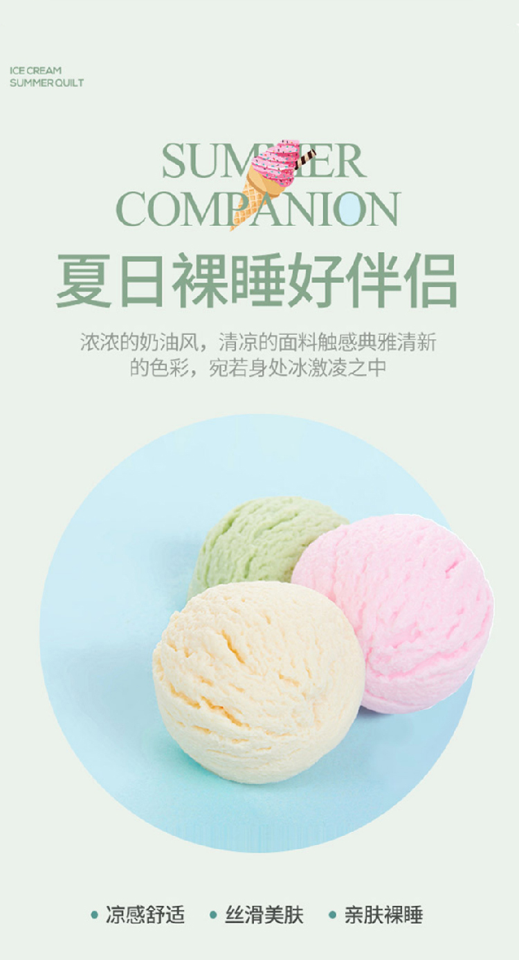 【冰淇淋凉感夏被】冷感黑科技全新空调被芯 可水洗夏凉被夏季薄被子