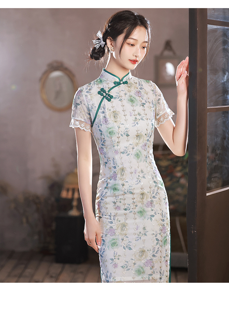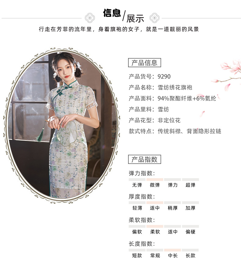修身减龄,改良年轻款日常款文艺少女雪纺旗袍BJS-9290