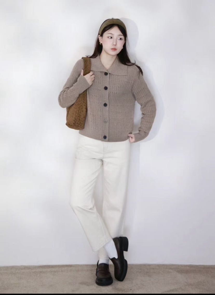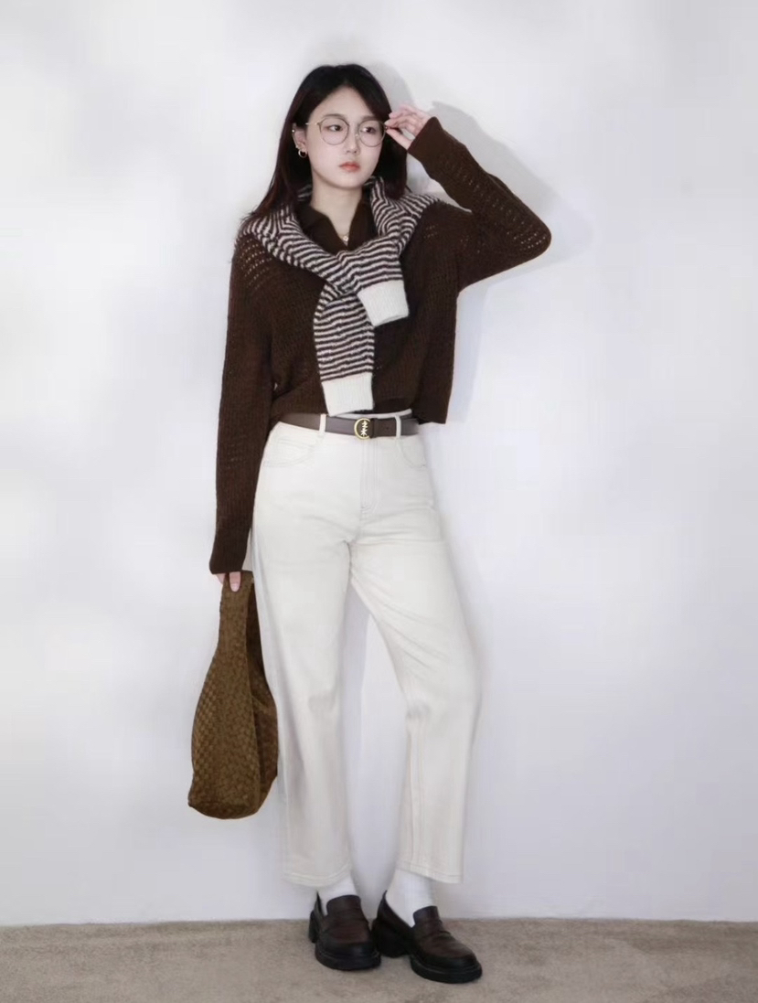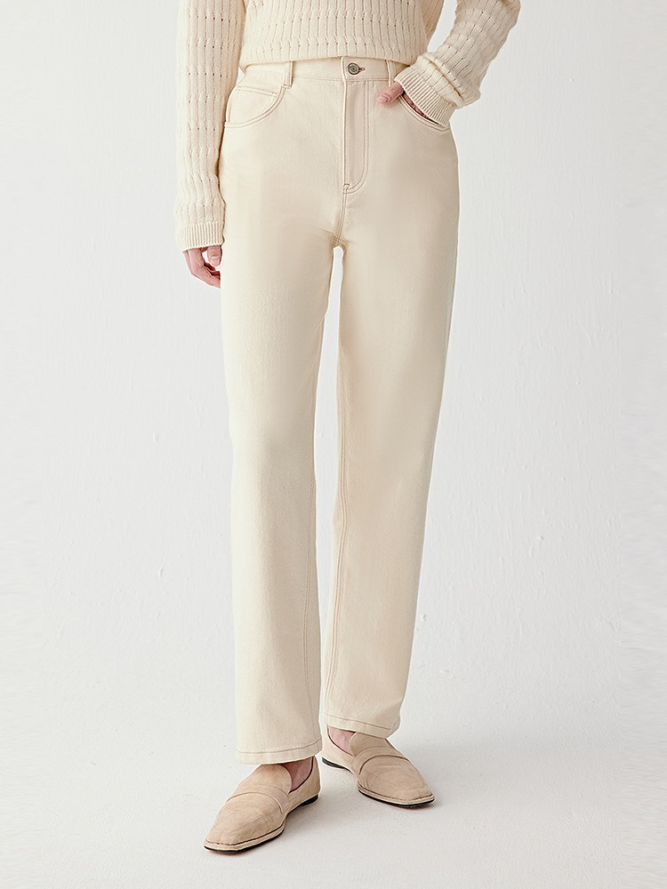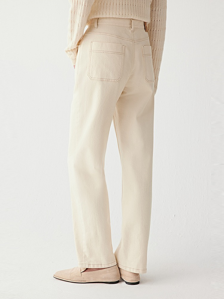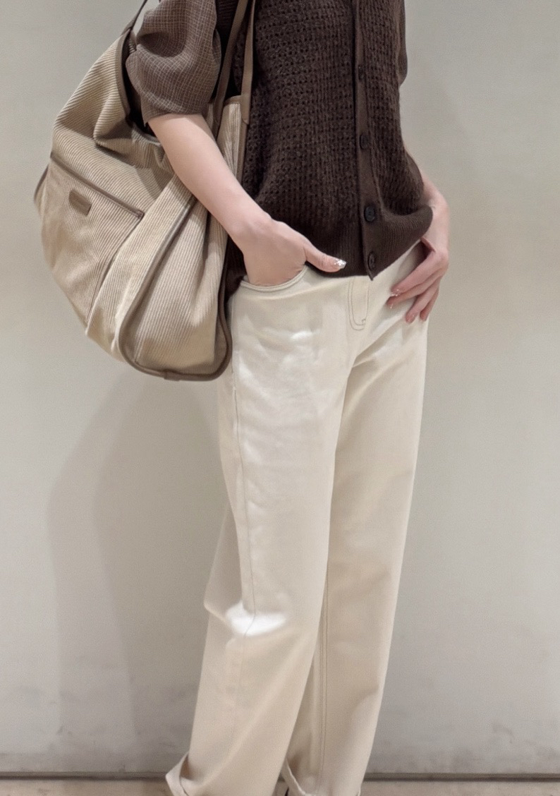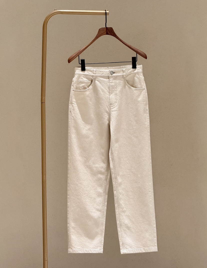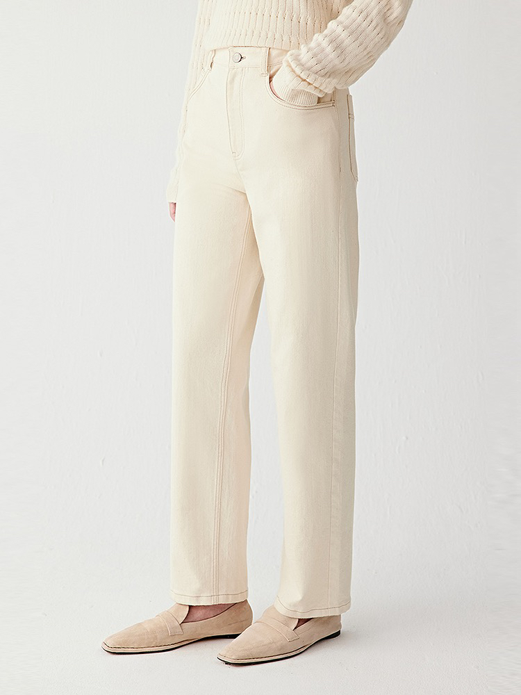 小禾土壤牛仔米白色牛仔裤