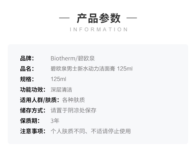 【1件包邮】碧欧泉男士水动力洁面乳125ml 泡沫绵密深澈净油温和不刺激 甘肃/青海/内蒙古/新疆/西藏/宁夏/海南/港澳台不发货
