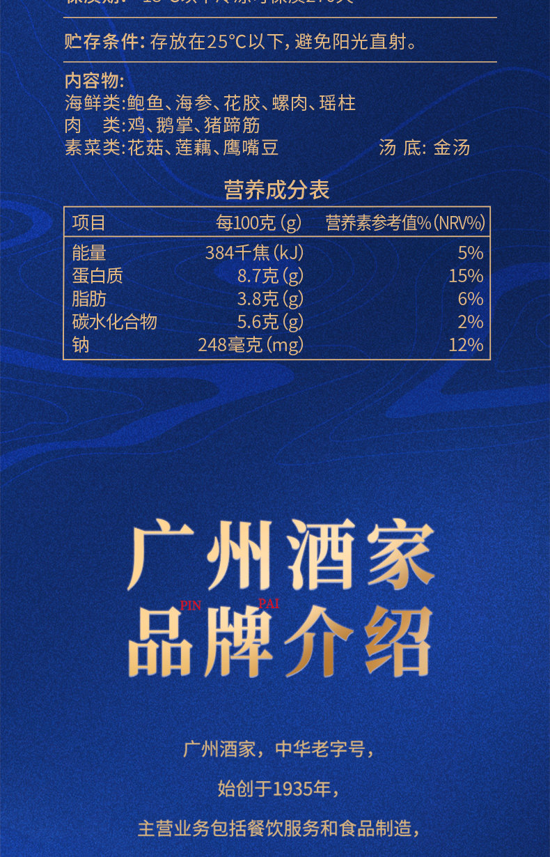 广州酒家大师佛跳墙海参花胶吉品干鲍鱼礼盒高端年货送礼盆菜家宴