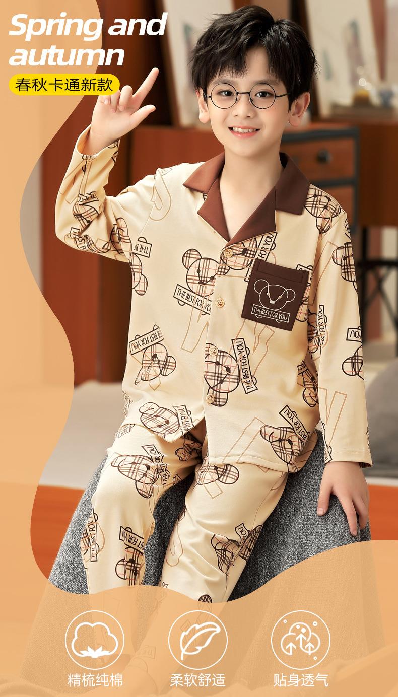 儿童男童睡衣春秋季薄款长袖纯棉秋款宝宝家居服中大童小男孩套装