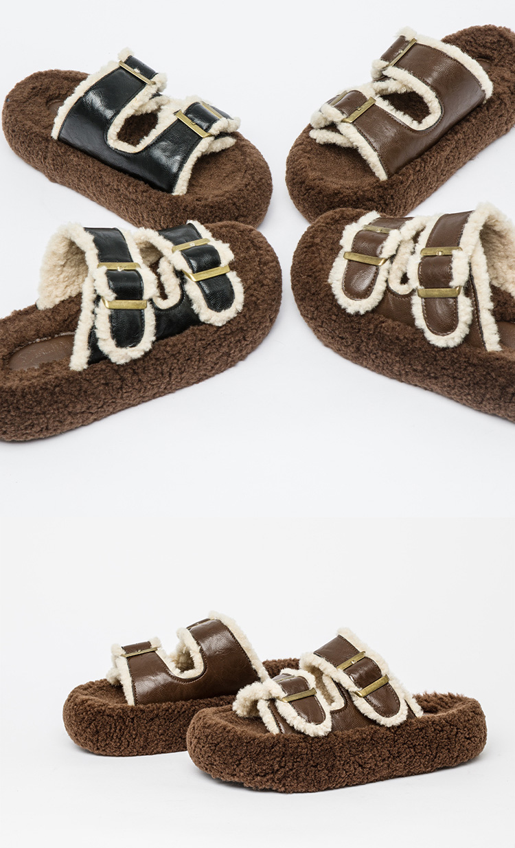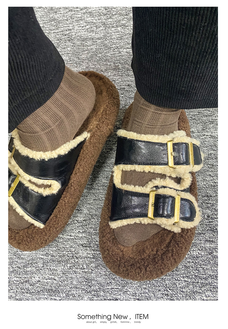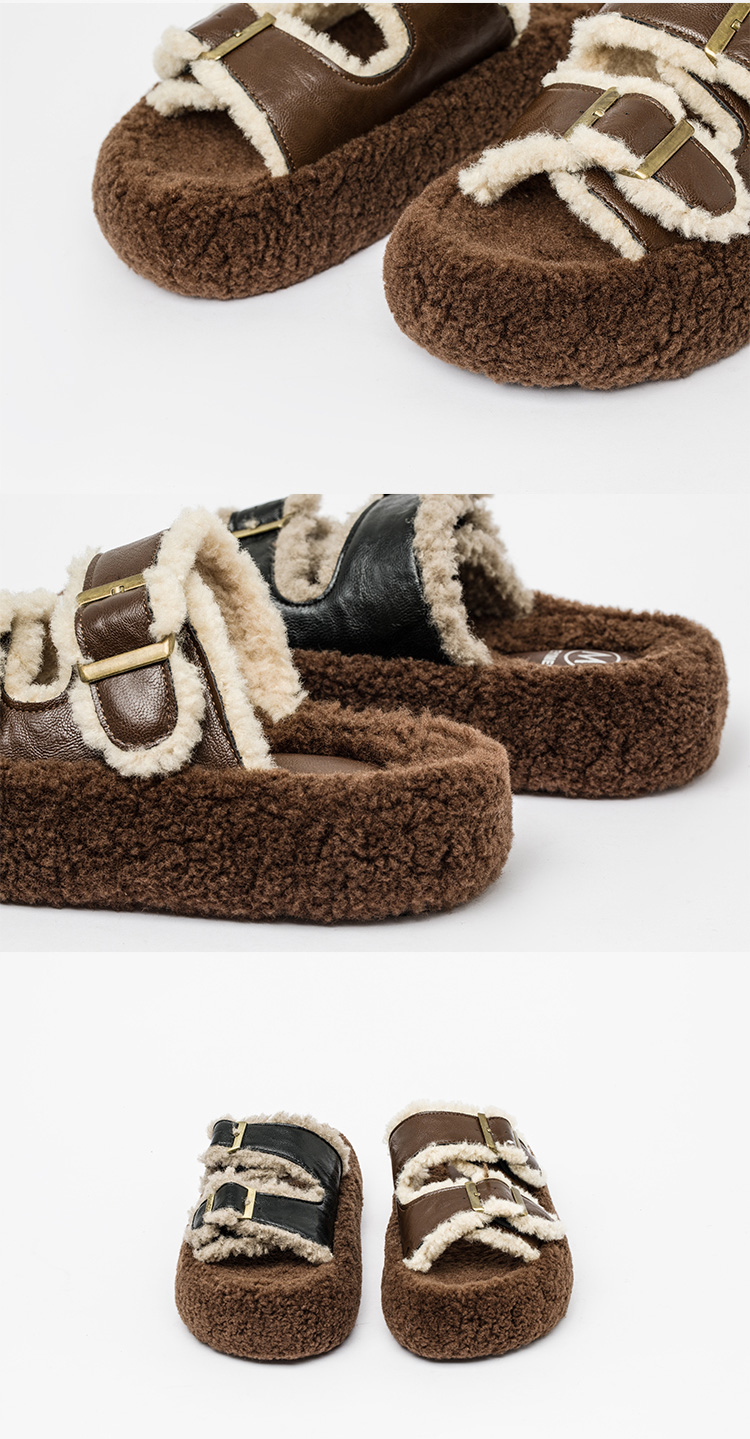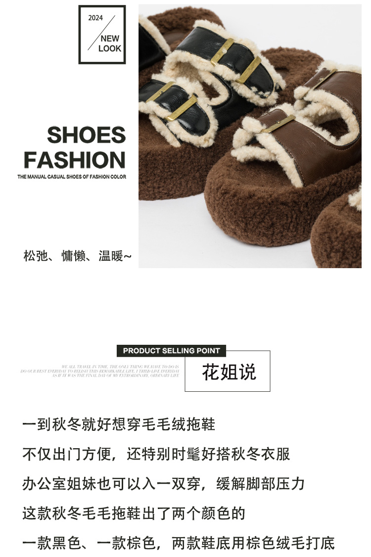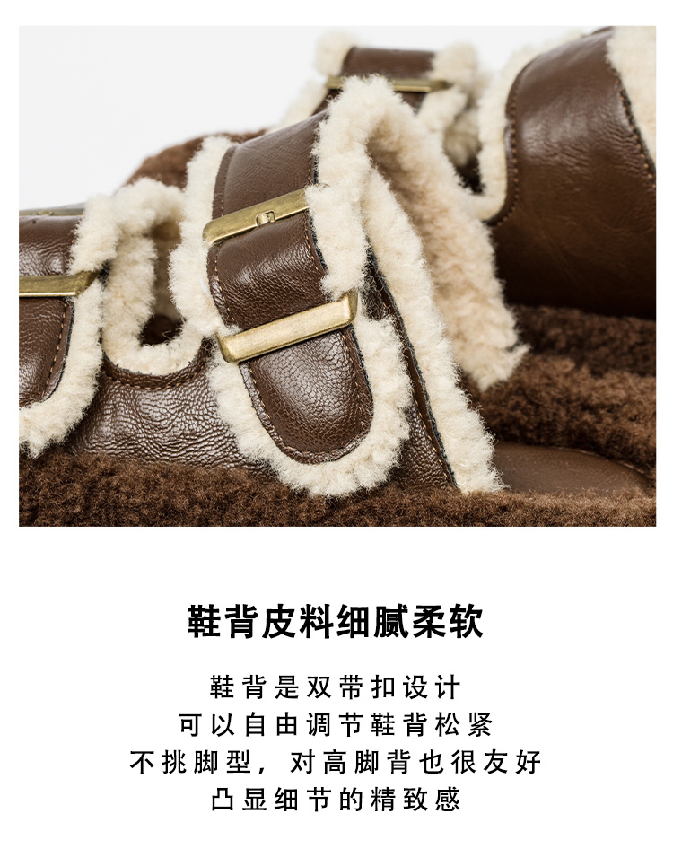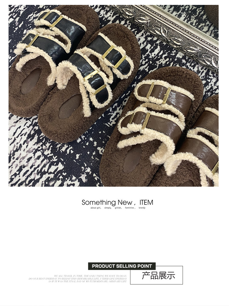 【勃肯拖鞋】跟高4厘米,黑棕两色【拍2减10】厚底棉拖鞋外穿慵懒增高毛毛拖鞋女,十几度温度穿没问题,