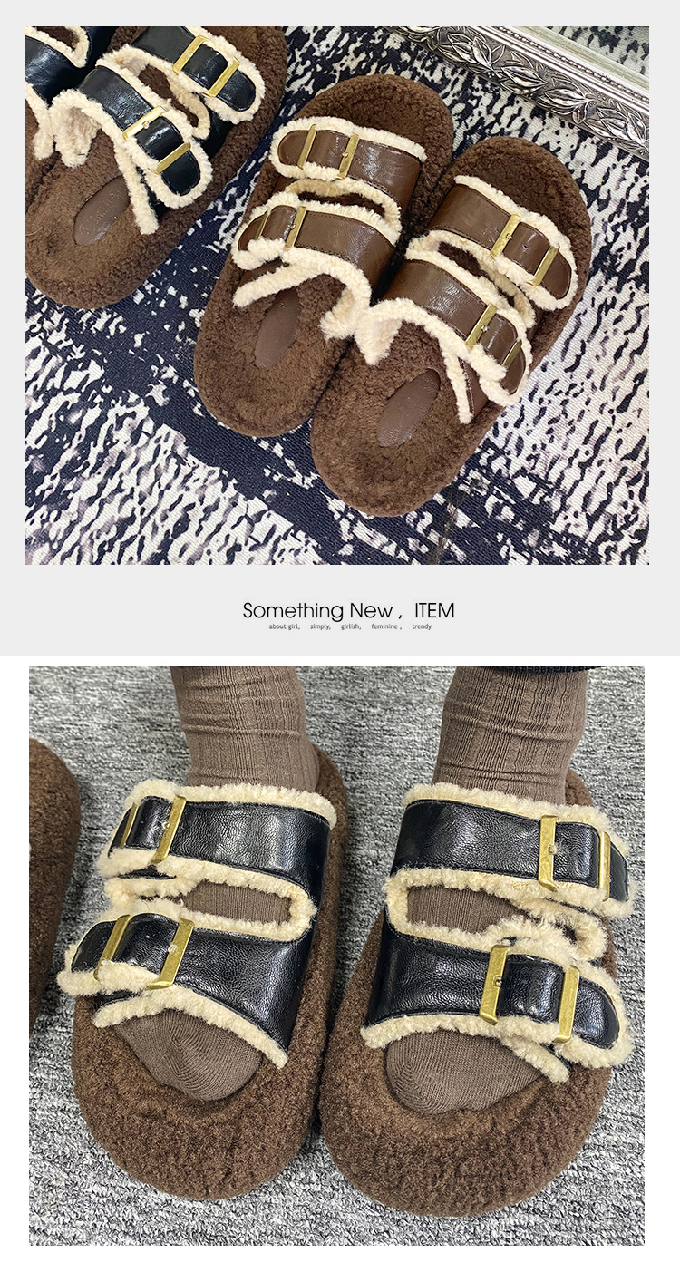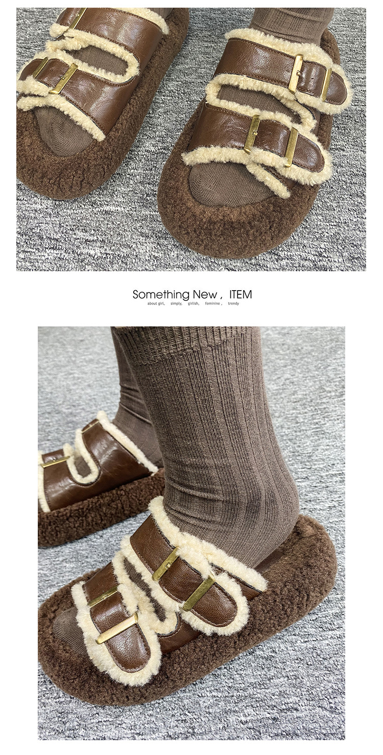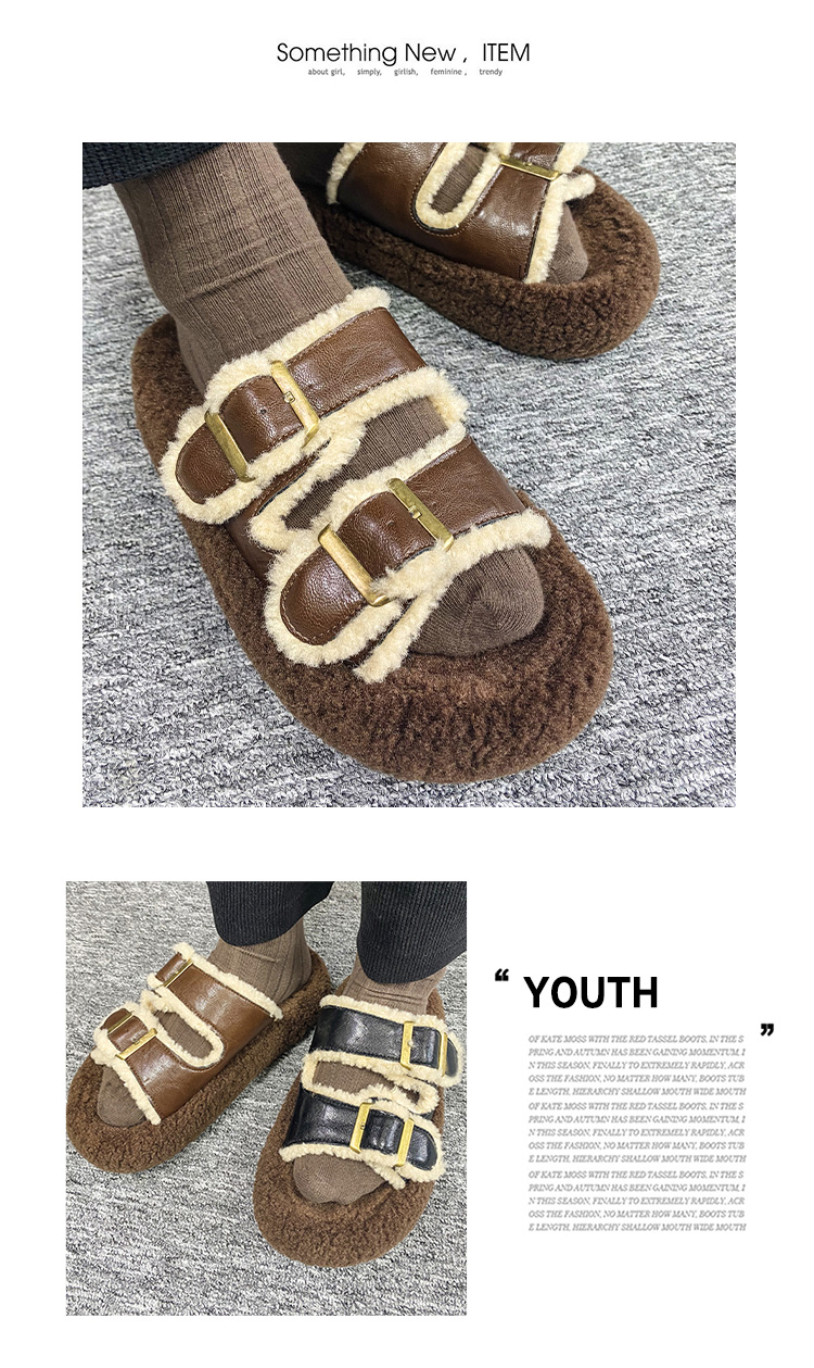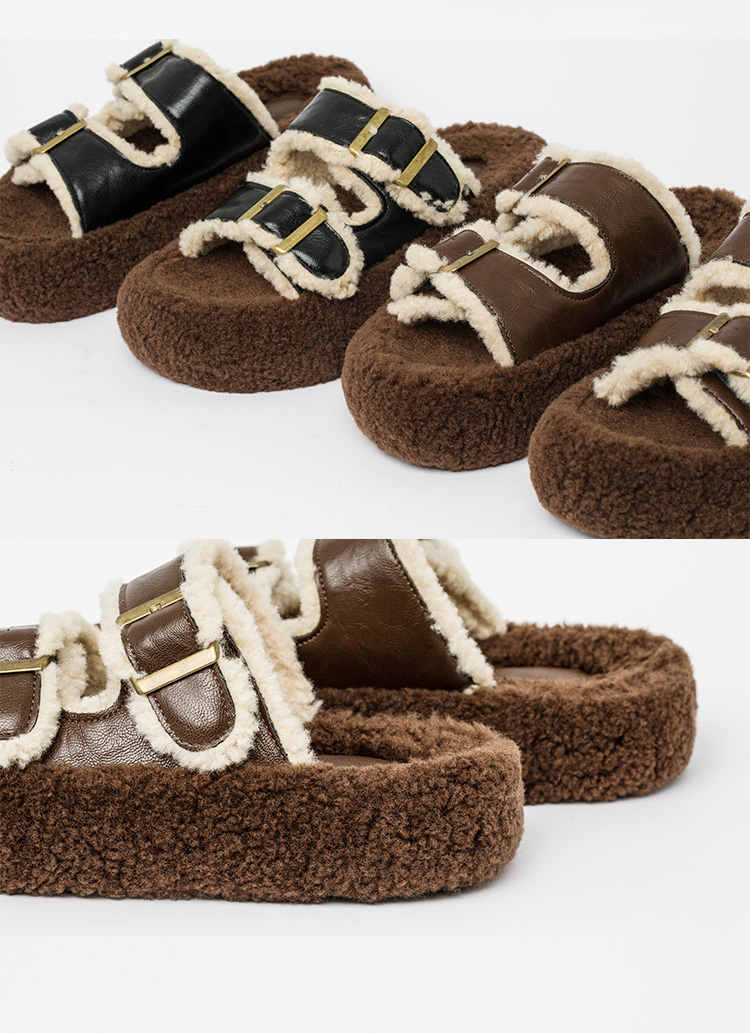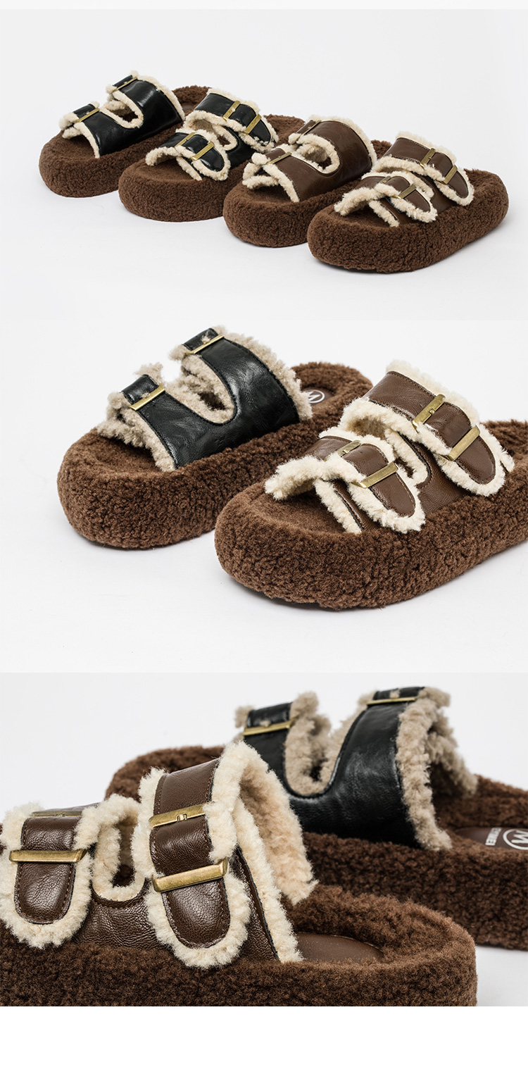 【勃肯拖鞋】跟高4厘米,黑棕两色【拍2减10】厚底棉拖鞋外穿慵懒增高毛毛拖鞋女,十几度温度穿没问题,