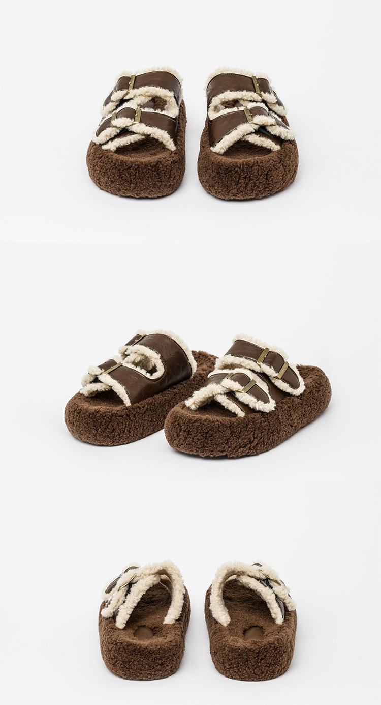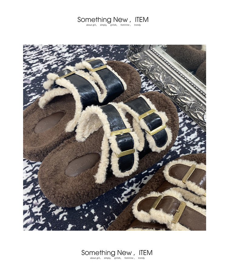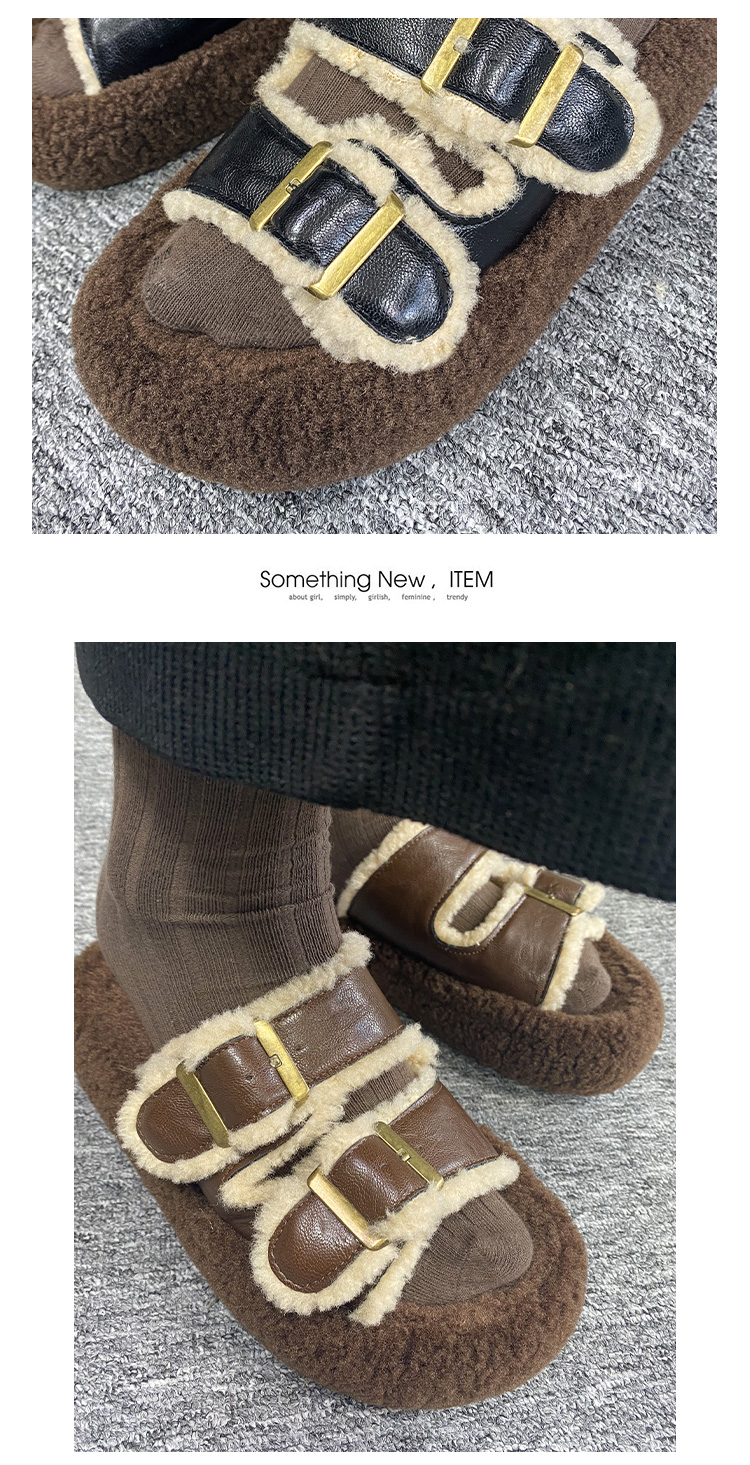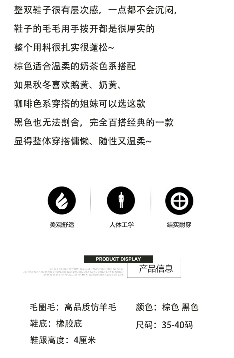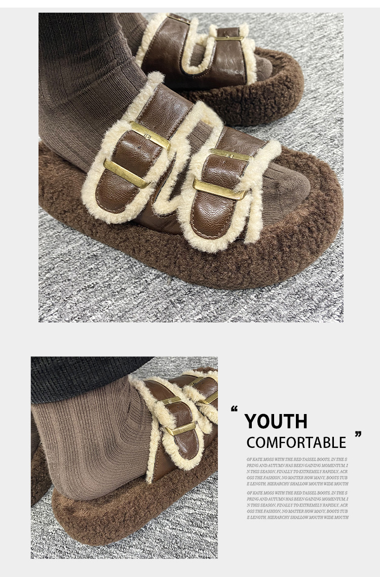 【勃肯拖鞋】跟高4厘米,黑棕两色【拍2减10】厚底棉拖鞋外穿慵懒增高毛毛拖鞋女,十几度温度穿没问题,