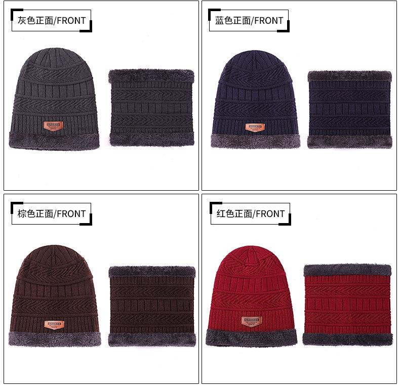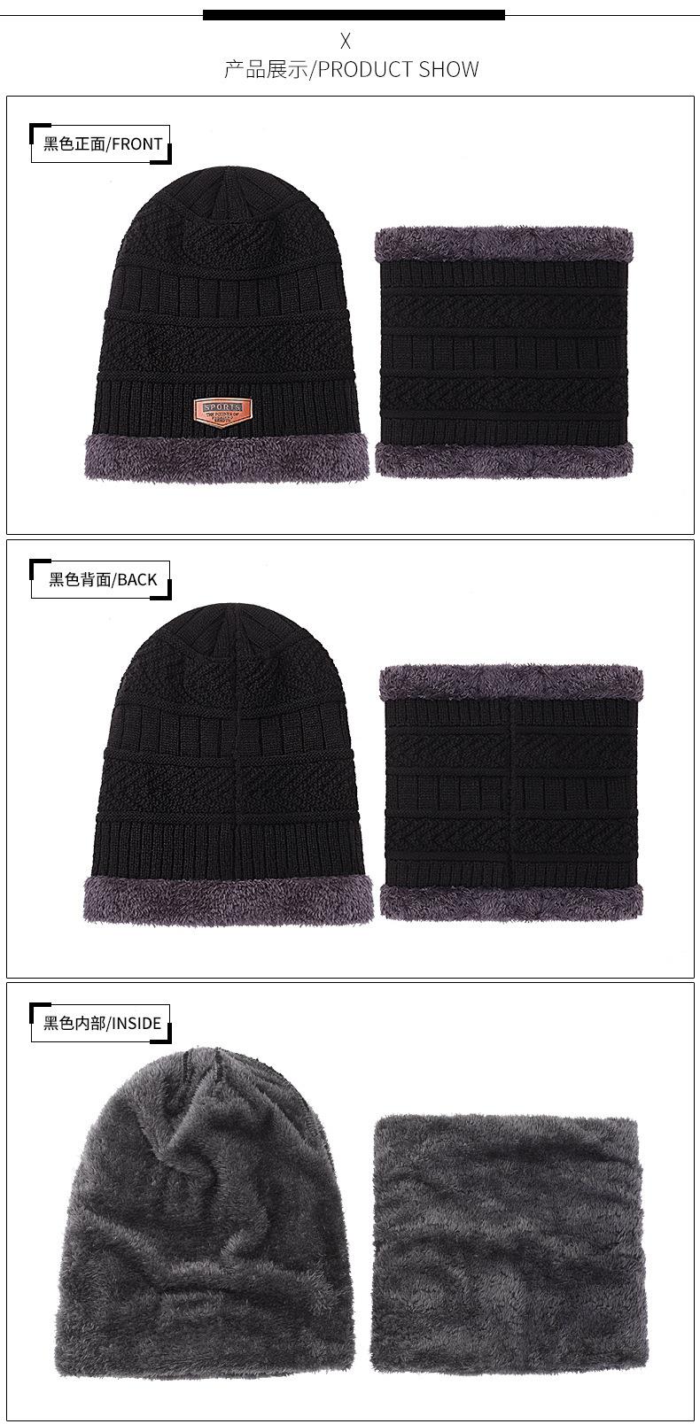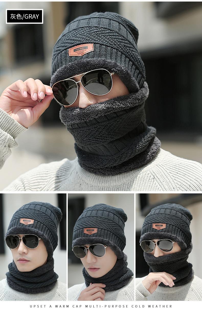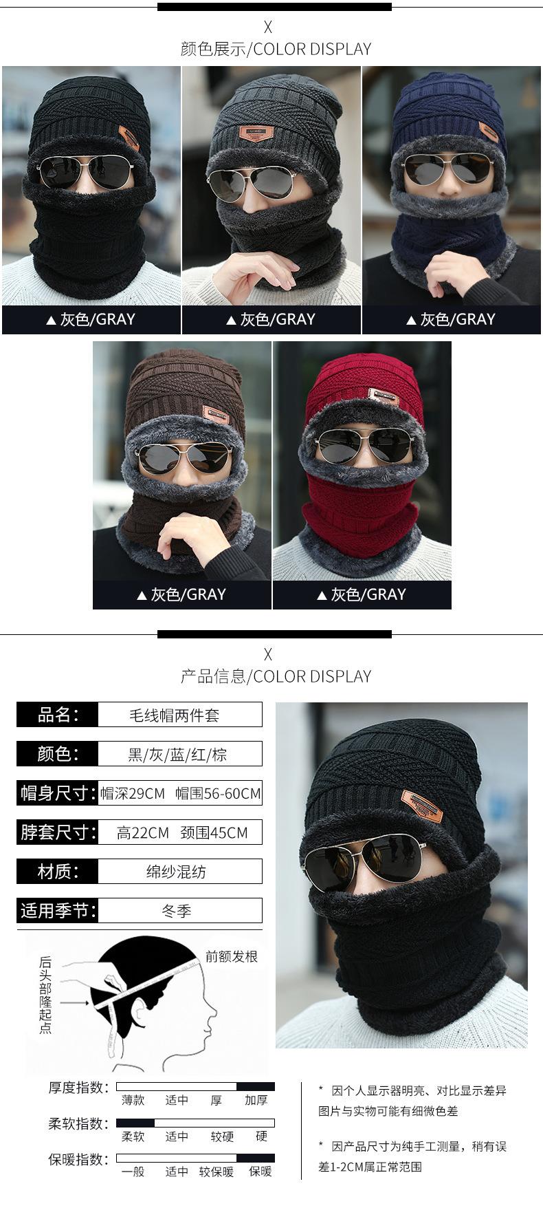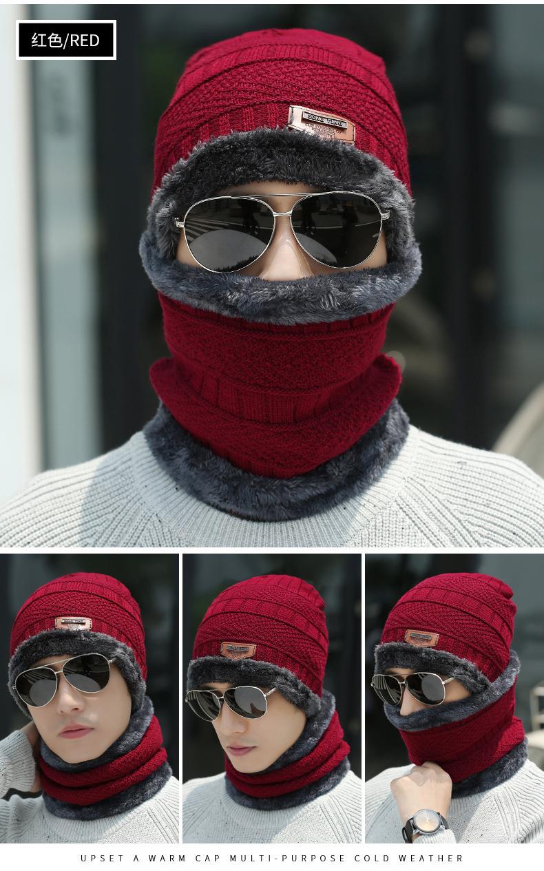 秋冬季保暖护脖毛线套帽男士加绒加厚针织帽子套头围脖两件套