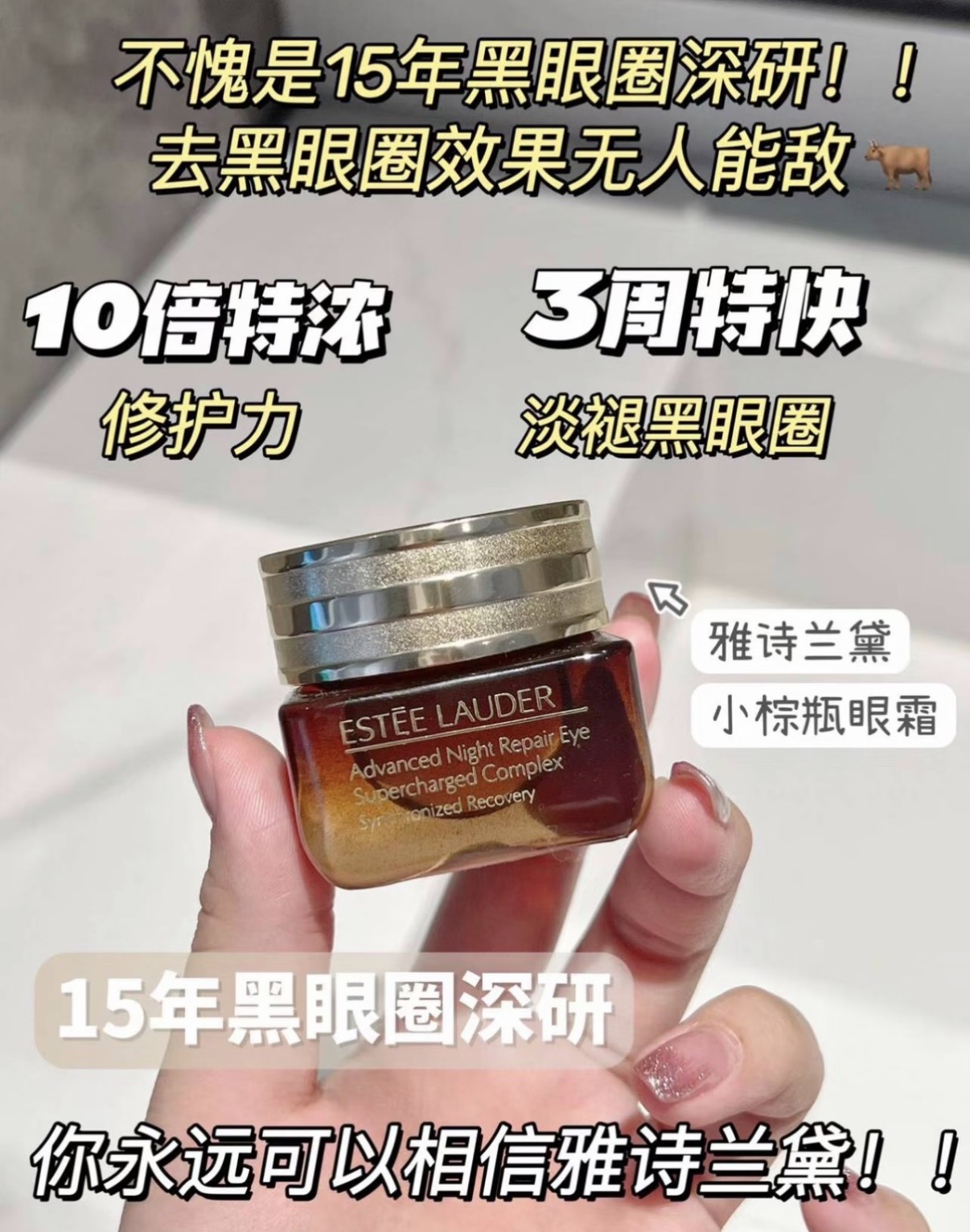 雅诗兰黛的“小棕瓶系列”,是顾客口中“闭上眼睛都不会挑错”的产品。久用,眼纹和“熊猫眼”渐渐消失,气质提升不止一个档次。