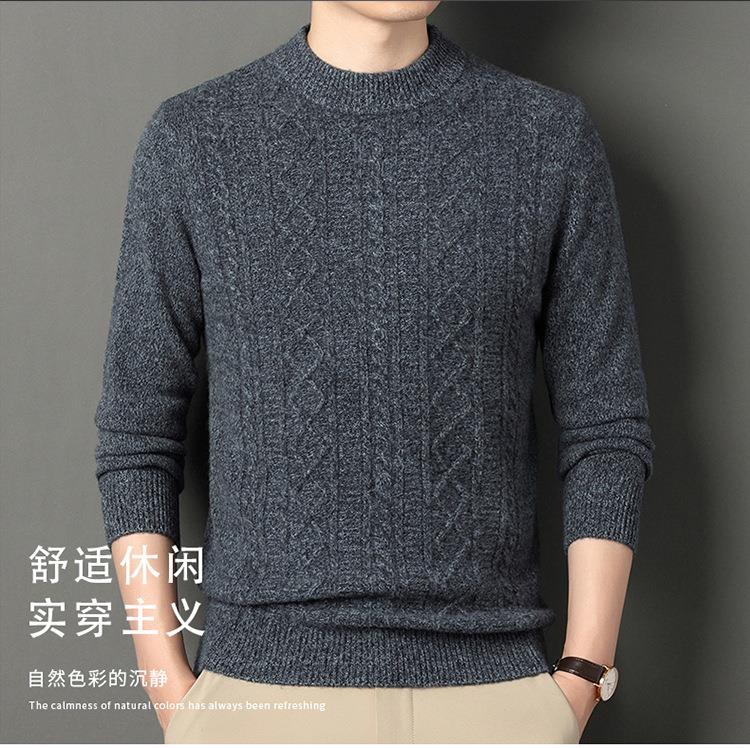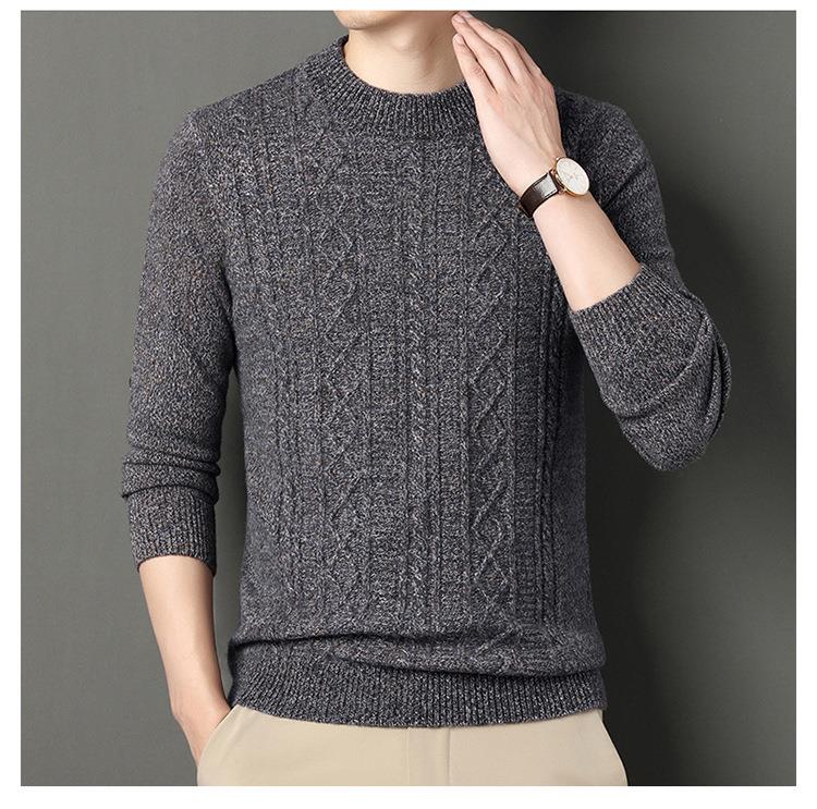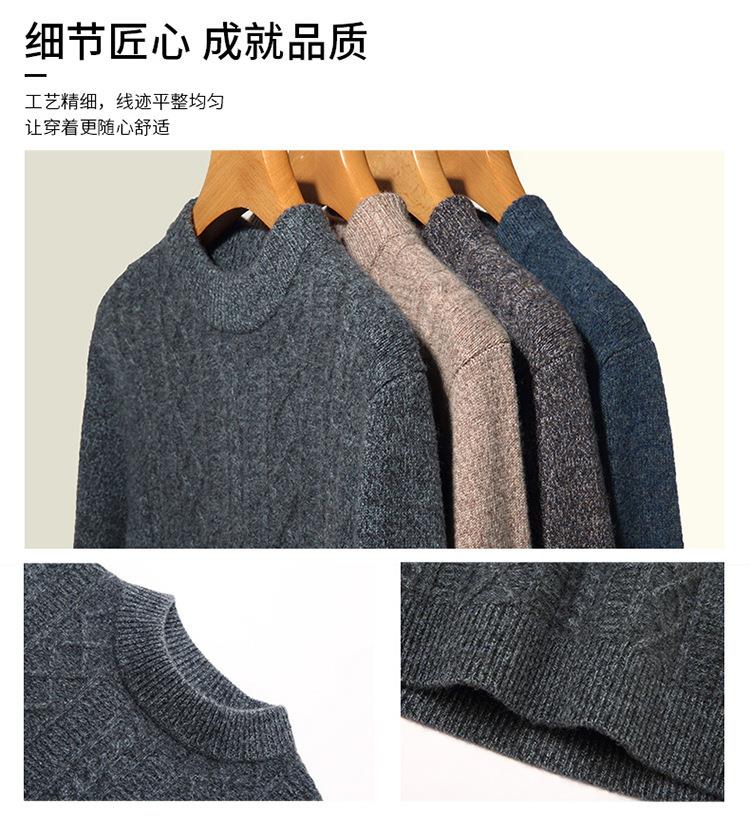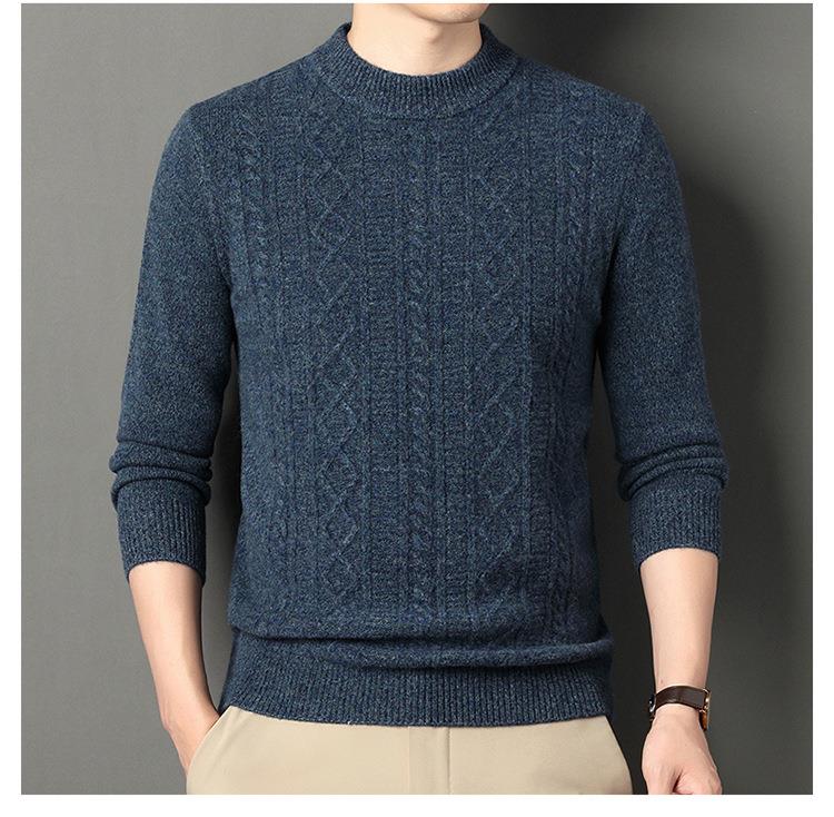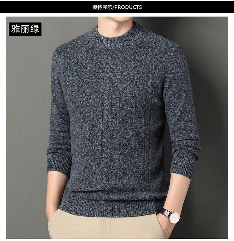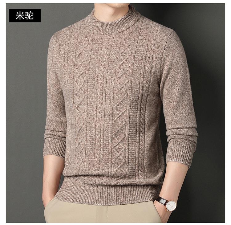 纯羊毛长袖毛衣男士秋冬季新款条纹提花时尚保暖休闲打底羊毛衫男