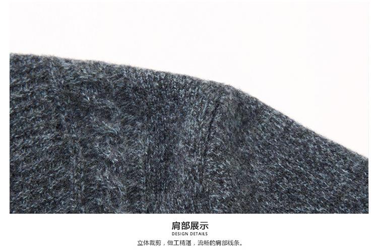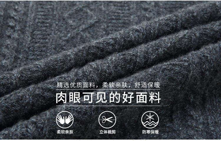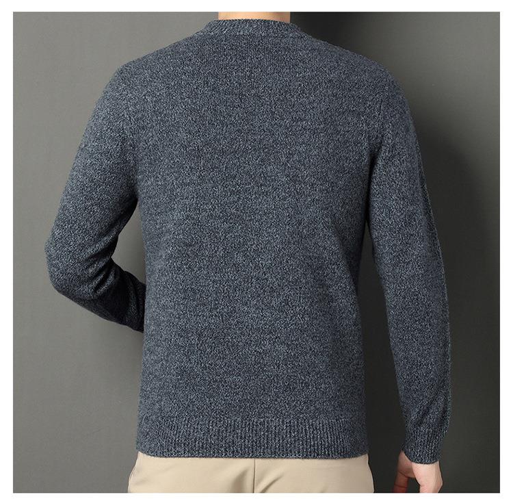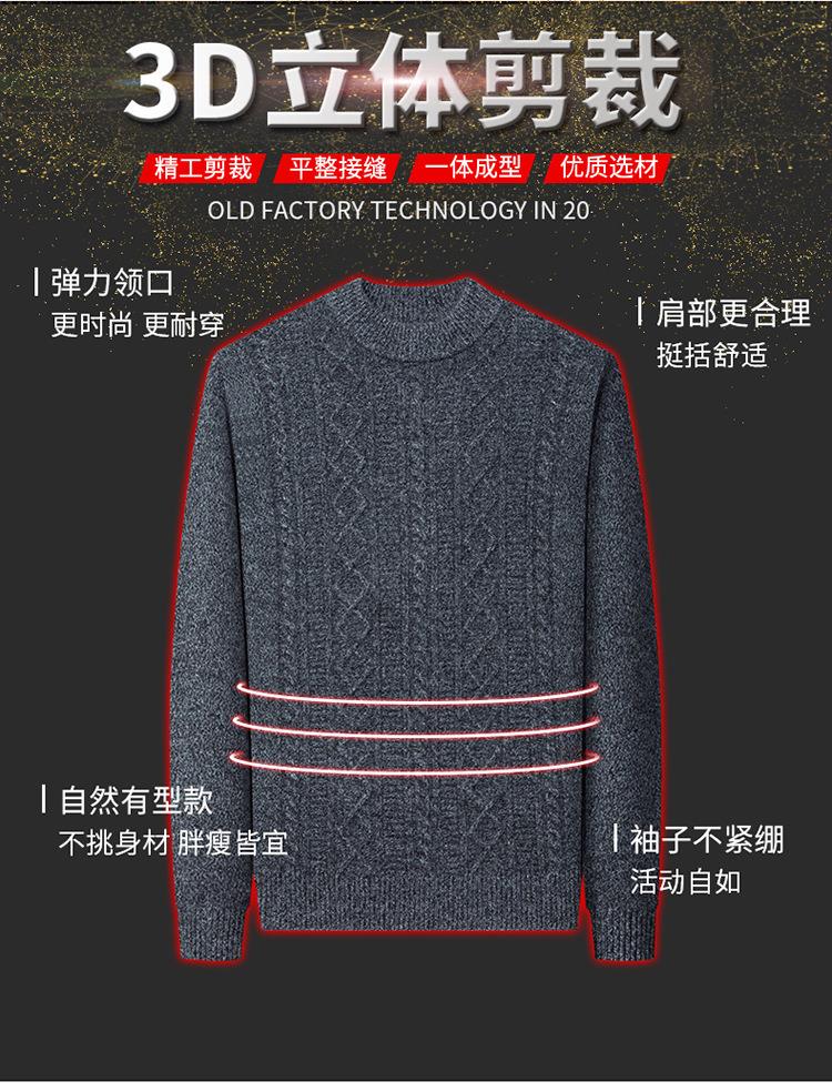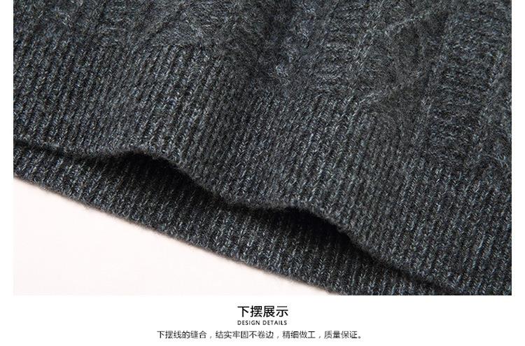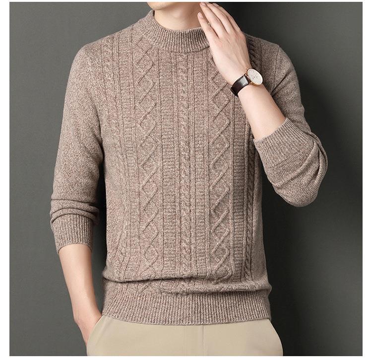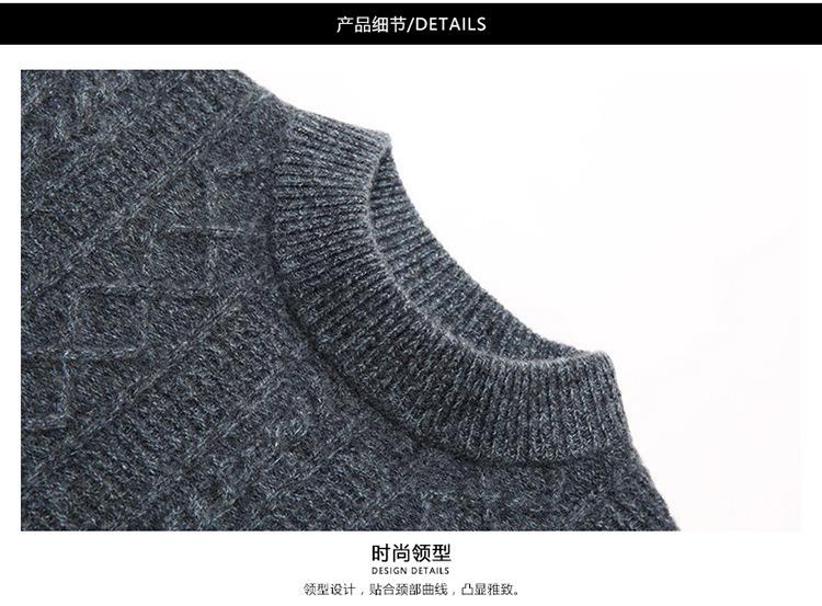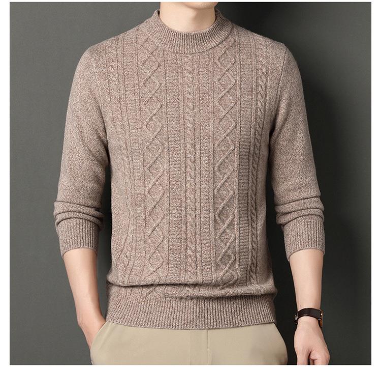 纯羊毛长袖毛衣男士秋冬季新款条纹提花时尚保暖休闲打底羊毛衫男