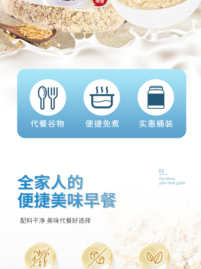 【1kg装】澳洲燕麦片 燕麦片早餐代餐速溶麦片谷物原味速食燕麦片冲泡即食1000g/罐
