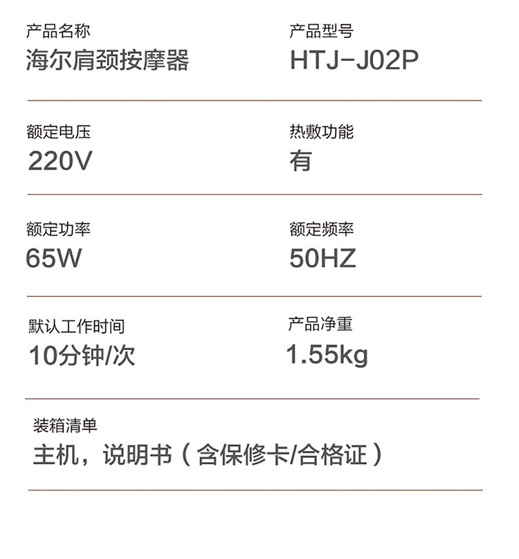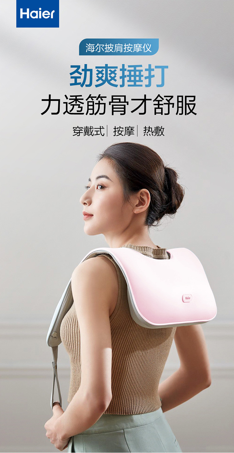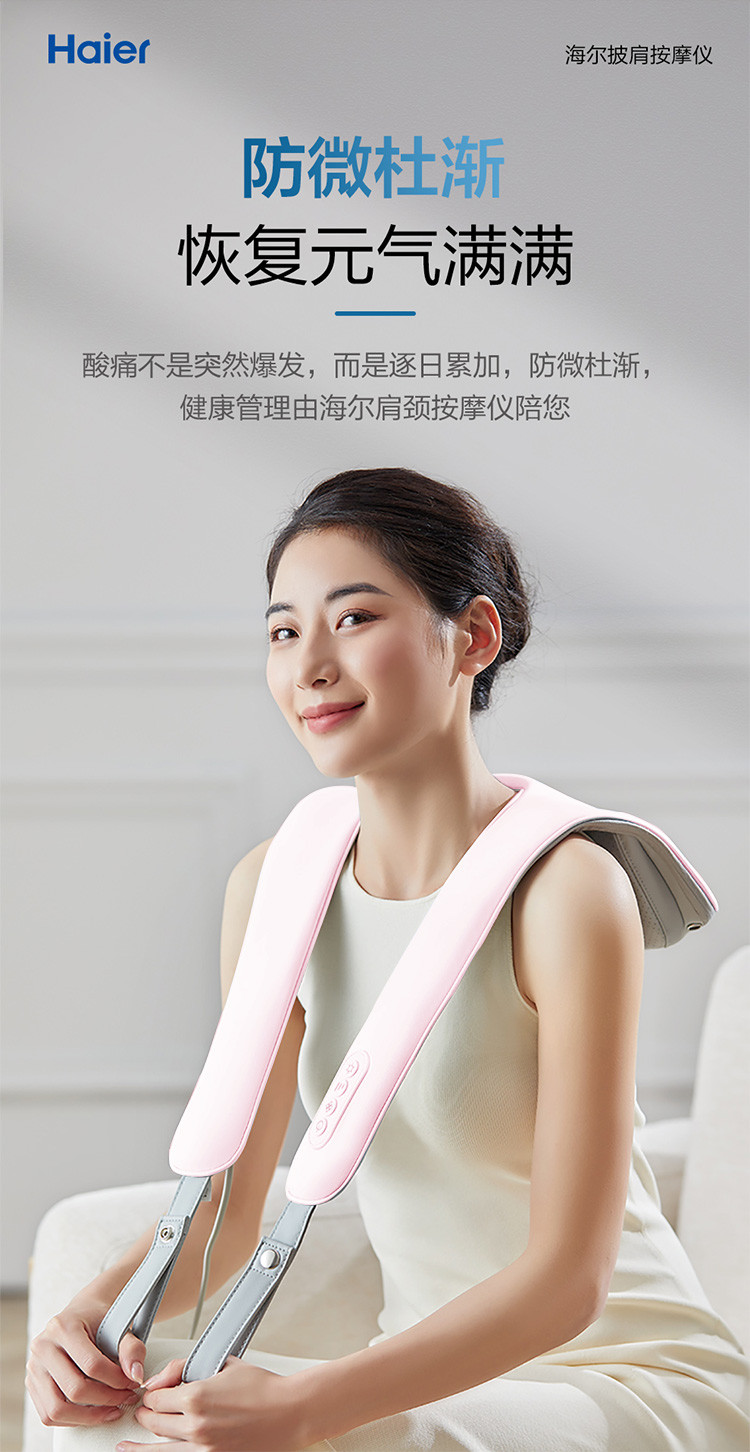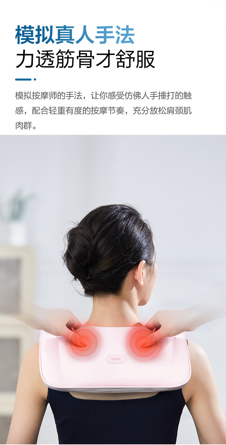 海尔颈椎按摩器肩颈按摩披肩背部腰部温感热敷按摩器家用便携式按摩仪HTJ-J02P