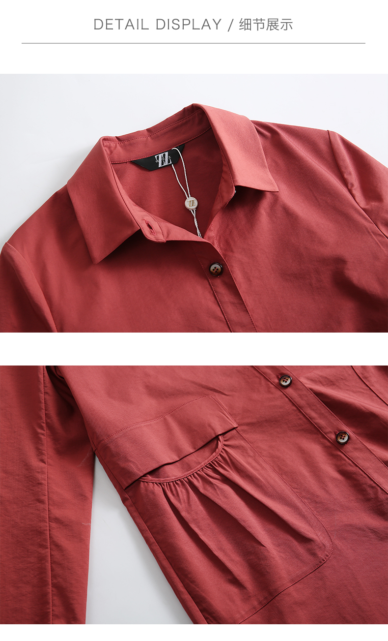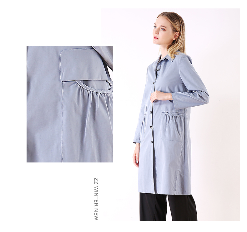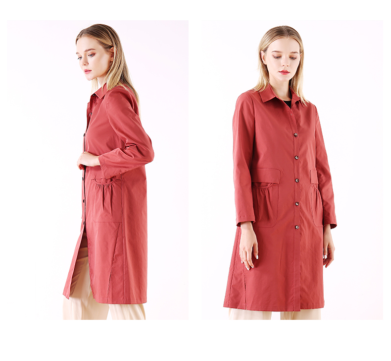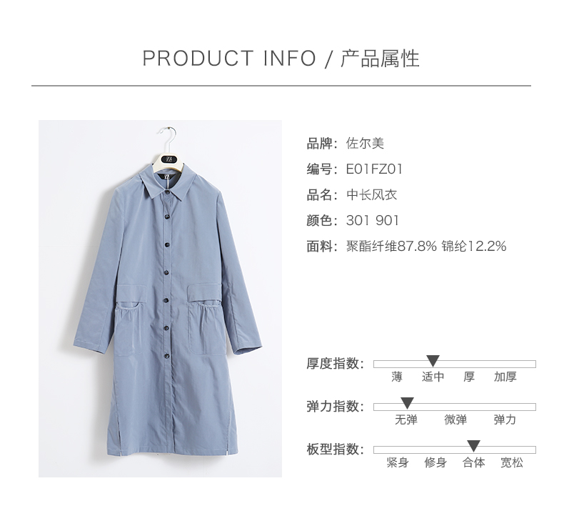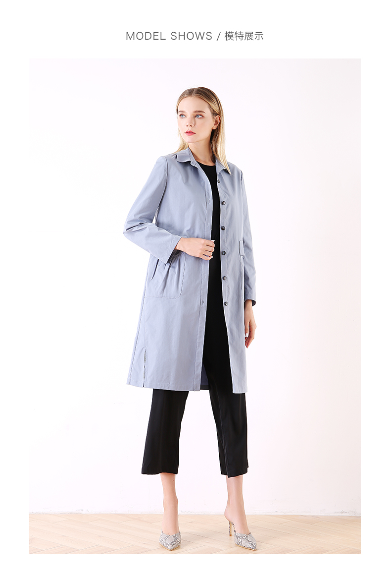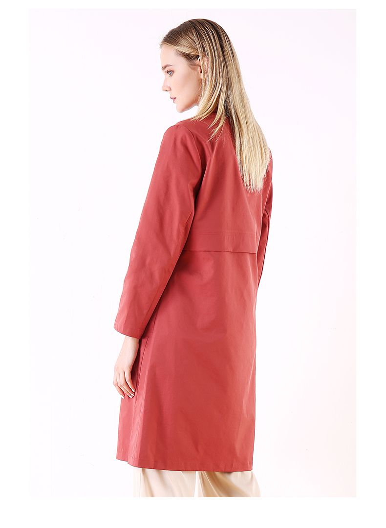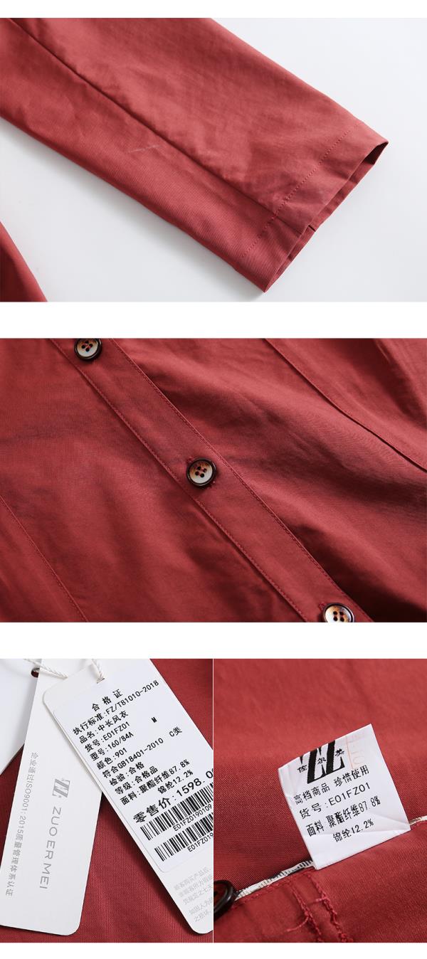 佐尔美春秋季新款简约时尚英伦风长外套衬衣领口风衣女E01FZ01