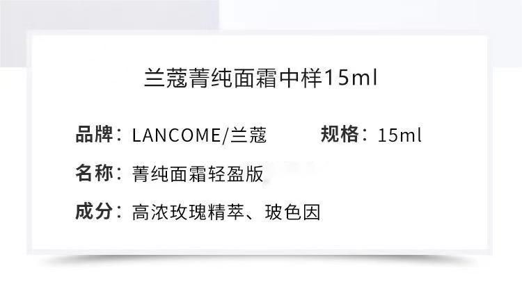 [透小蜜心选]【活动价 ¥99.9】【兰蔻全新菁纯臻颜面霜轻盈版/滋润版】柔缎质地 紧致肌肤 淡化细纹 15ml/瓶