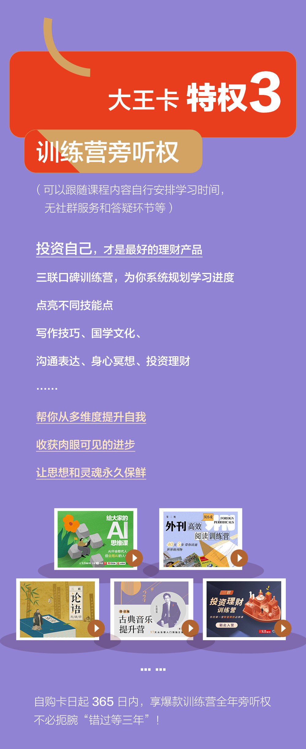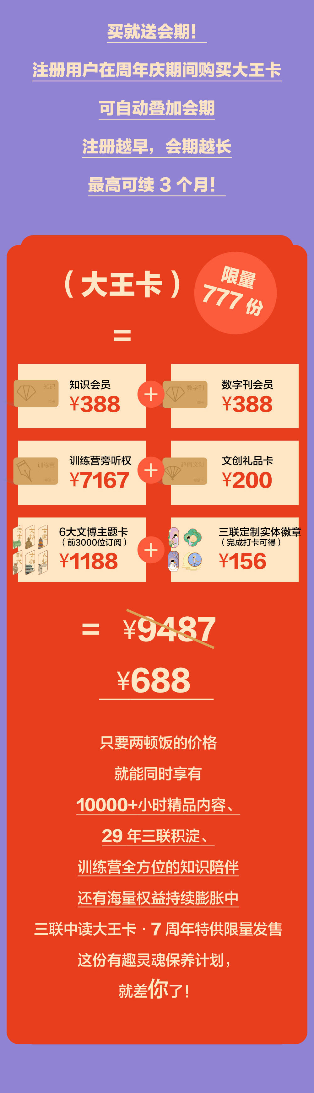 使用购买时填写的手机号,登录三联中读APP,可立即生效并查看会员权益;训练营旁听权在app首页-训练营-7周年大王卡频道可查看解锁训练营。文博权益请留意APP站内信,6月10日前开通后会收到站内提醒。