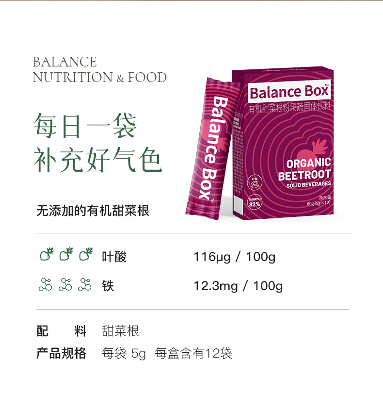 有机甜菜根粉补充叶酸好气色每天来一袋5g*12袋/1盒