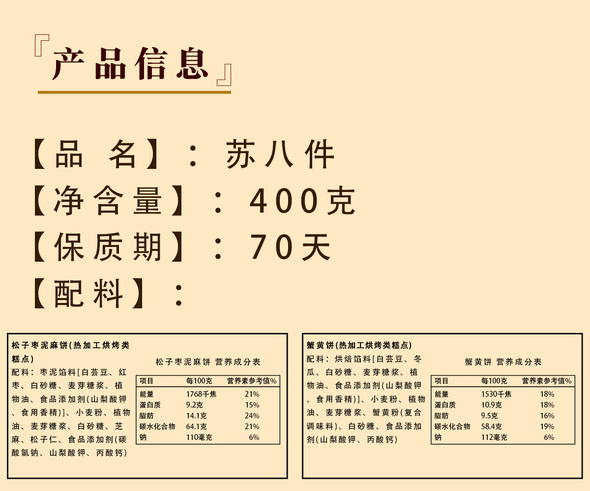 【正宗苏州特产❗️老式苏八件糕点礼盒】“苏八件”记忆中的苏州老味道,松子枣泥饼,蟹黄饼,蟹壳黄(黑麻茉莉味),碧螺春茶饼,桃酥,乳酪香酥,芝麻酥糖,松仁棕子糖,手礼传统中式休闲零食小吃点心L