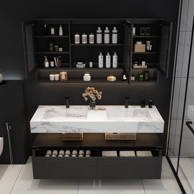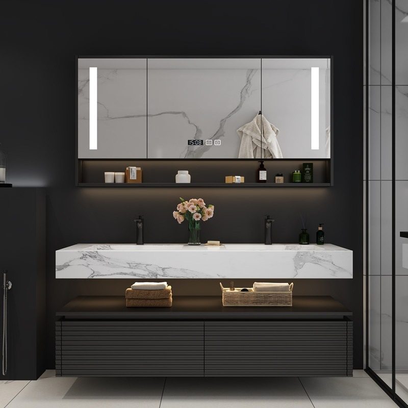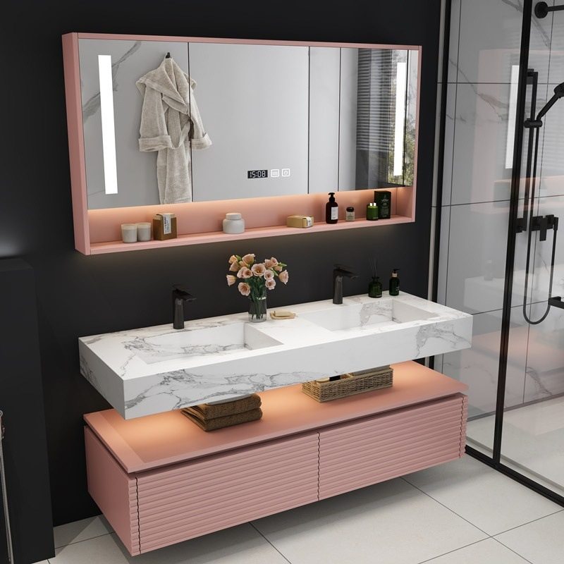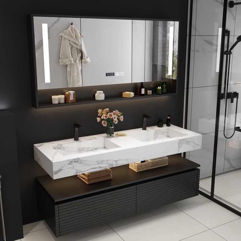 盆台盆轻奢新款镜柜洗手盆一体卫生间岩板新款洗漱现代智能浴室柜