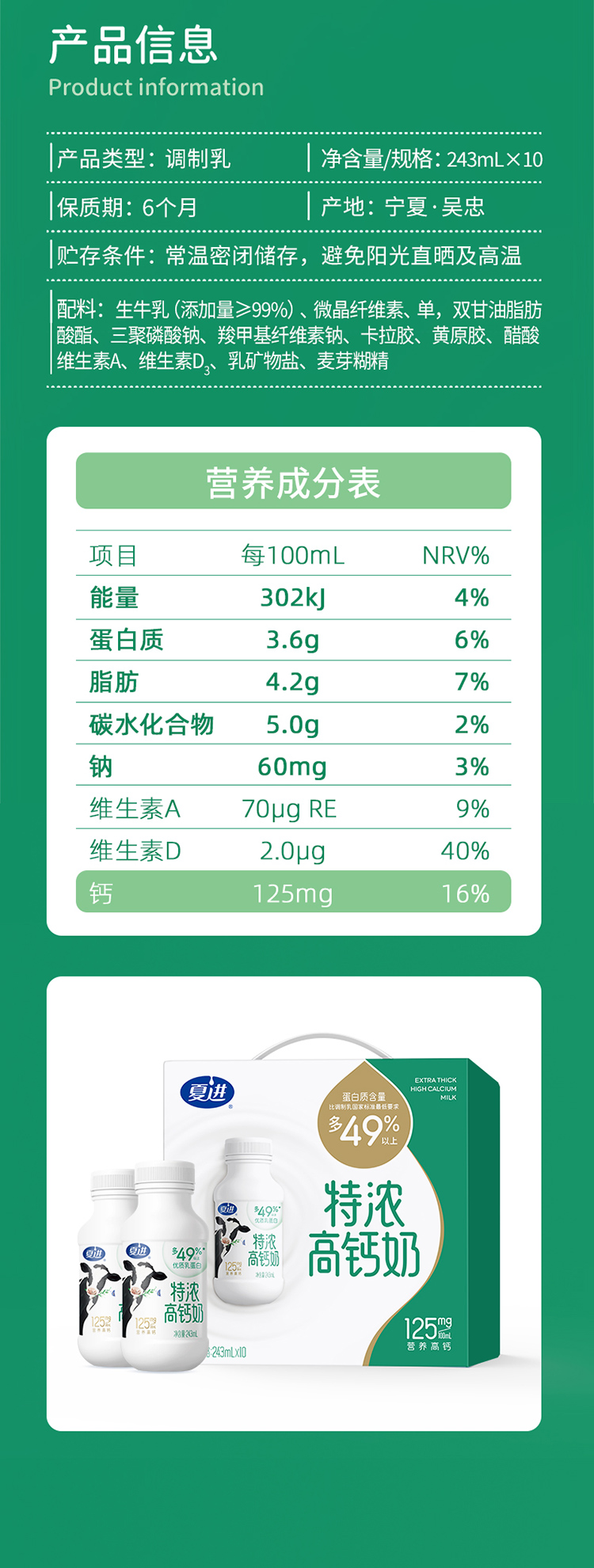 夏进梦幻盖爵品纯牛奶250ml×10瓶